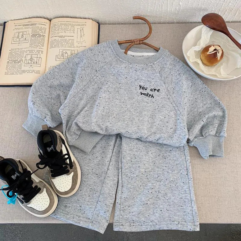 Kinder Hoodie Set mit Punkten und breiten Hosen im koreanischen Stil