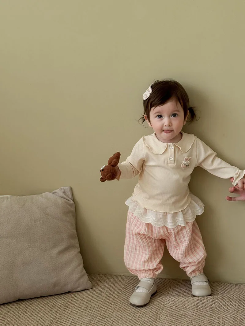 Mädchen Hemd mit süßem 3D Bunny und Kragen für Kinder von 9M bis 5T