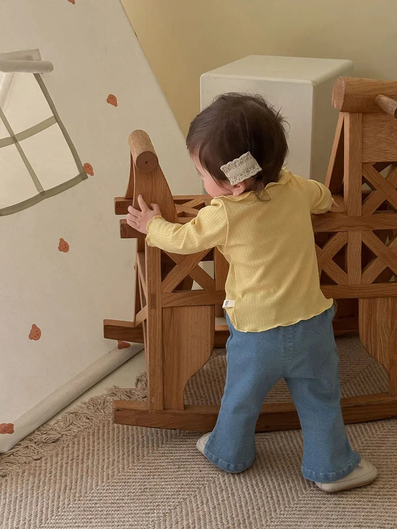 3.**Weicher, gerippter Stoff**: Hergestellt aus weichem, dehnbarem, geripptem Stoff, bietet es eine bequeme Passform und ist sanft zur Kinderhaut (9 Monate bis 5 Jahre).