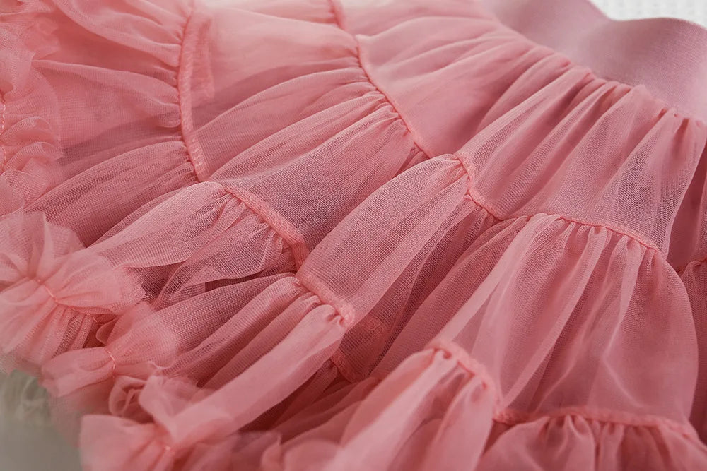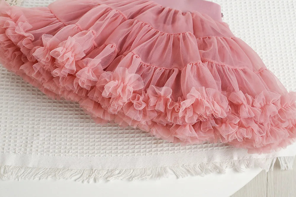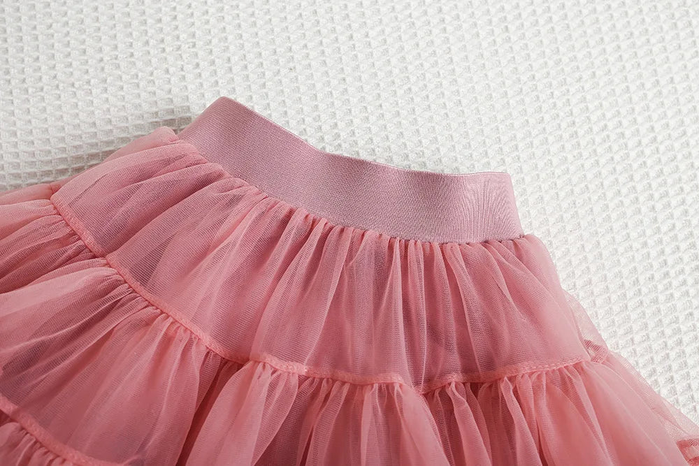 4.**Flauschiger Tüllrock**: Der voluminöse Tüllrock sorgt für eine verspielte und feminine Silhouette, perfekt zum Drehen und für besondere Anlässe.
