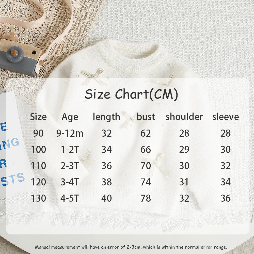 2.**Zarte Schleifen- und Perlenverzierungen**: Die Pullover verfügen über bezaubernde Schleifen und Perlenakzente, die einen Hauch von Luxus und Niedlichkeit verleihen.