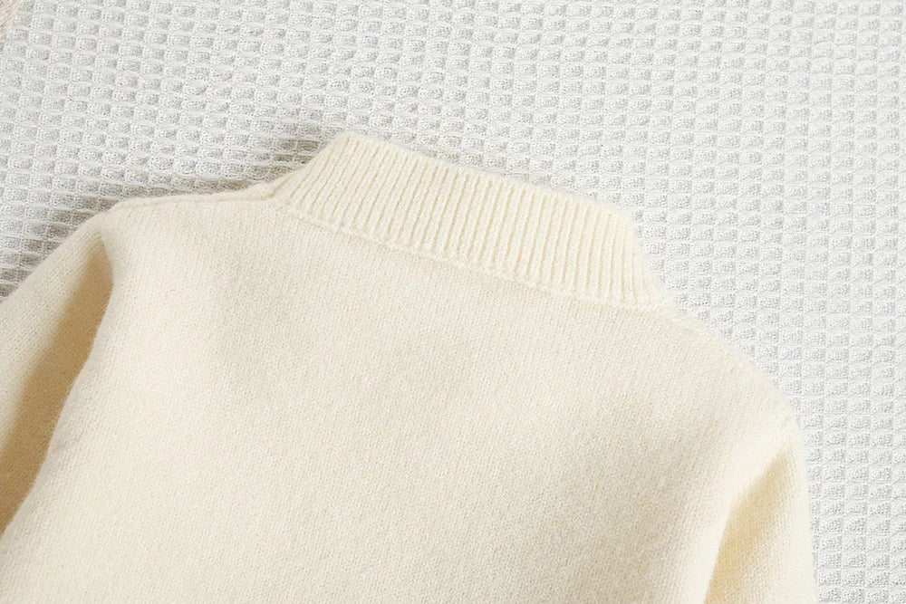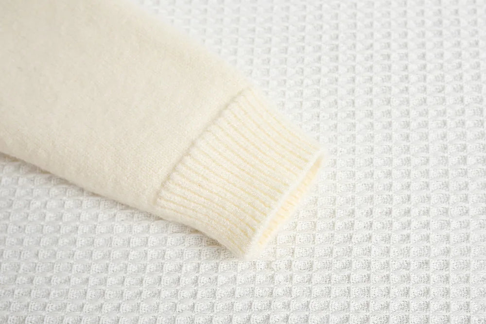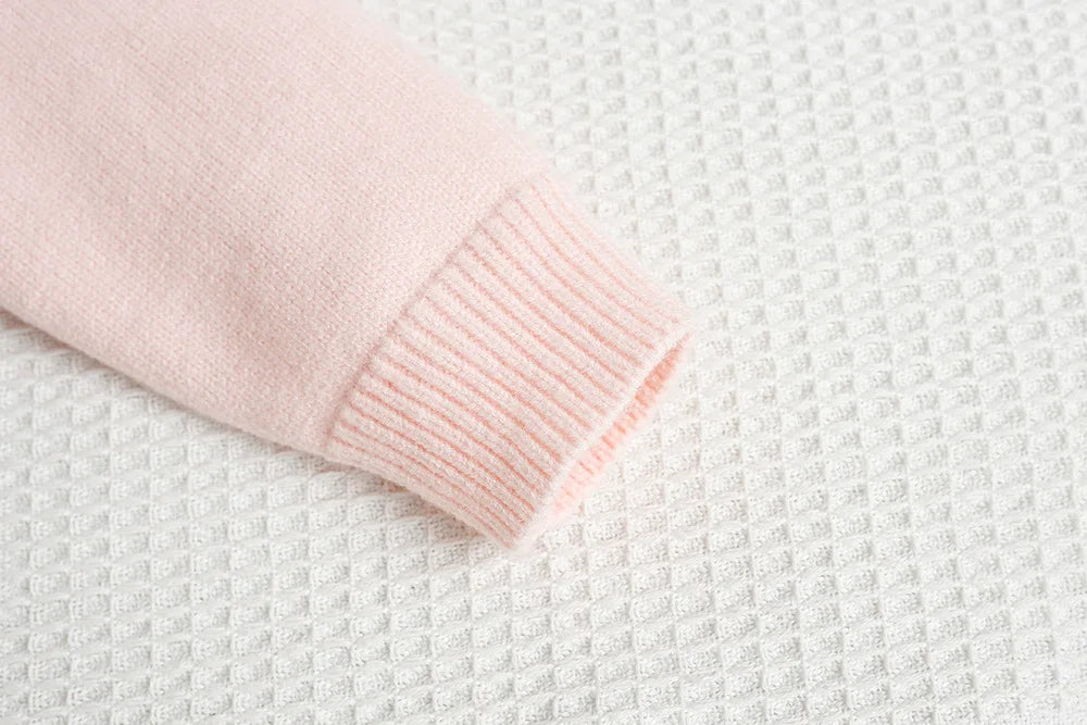 3.**Süßer Rundhalsausschnitt**: Der klassische Rundhalsausschnitt lässt sich leicht mit verschiedenen Unterteilen wie Hosen oder Röcken kombinieren und ist praktisch zum Anziehen.