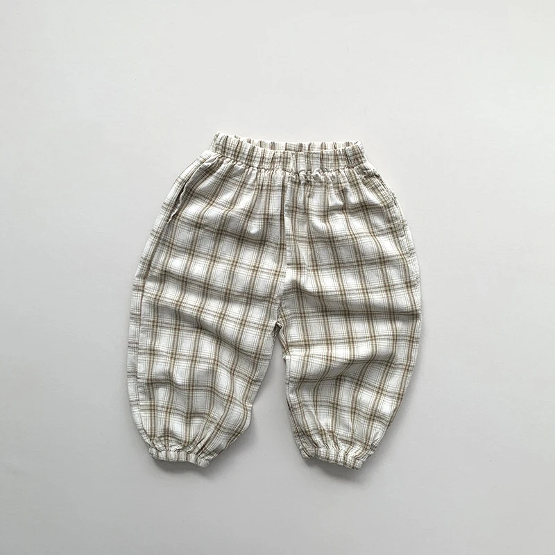 Kinder Hosen im dünnen Stil mit kariertem Design für den Sommer
