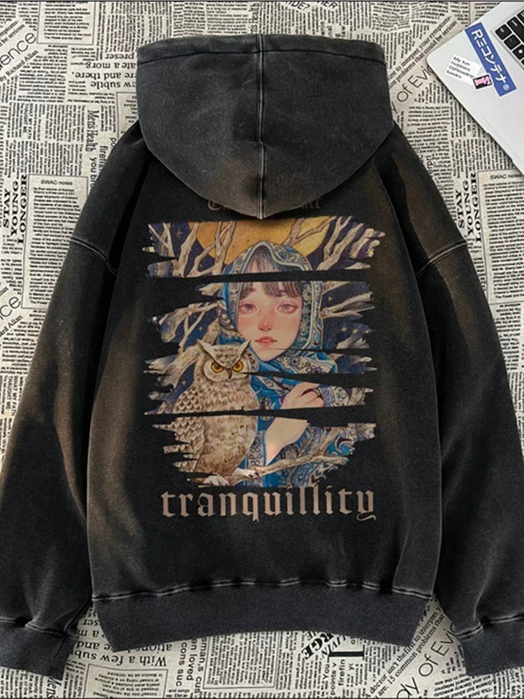 Neue Herren Kunst Eule Mädchen Grafikdruck Kapuzenpullover Gewaschen Distressed Harajuku Mode Pullover Hoodies Y2K Streetwear Hoody