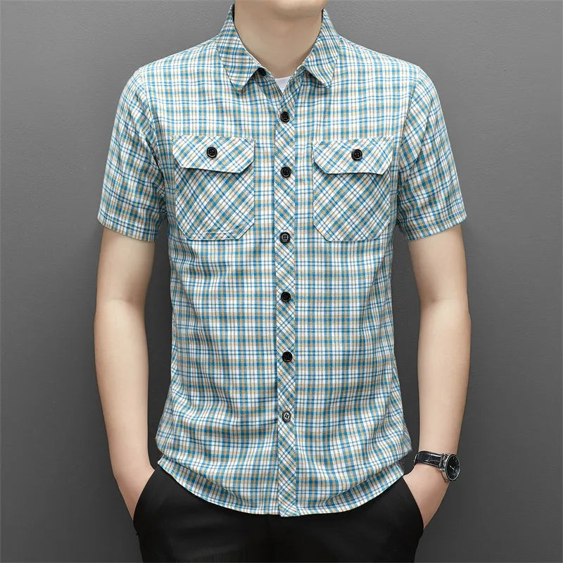 Leichtes Herrenhemd mit langen Ärmeln – Lässiges, lockeres Oberteil für Männer mittleren Alters und Senioren