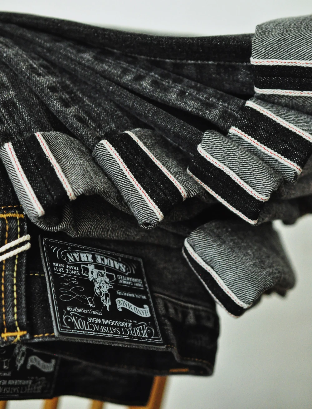 Die neue Herbst und Winter gewaschen schwarze Jeans, die 14 Unzen Web kante Denim verwenden, und die Verwendung von vulkan isierten schwarzen Farbstoff gewaschen alten Prozess. Der Schnitt des Produkts ist gerade Passform mit bequemer Breite am Oberschenkel und an der Hüfte. Der Stoff ist schwer und fest, der Wasch stil ist weich, die Farbe ist transparent und natürlich und die Wasch farbe ist nah an der natürlichen verblassen den Weichheit. Es verwendet ein vulkan isiertes Färbe verfahren, so dass es einen leichten schwefel artigen Geruch hat.