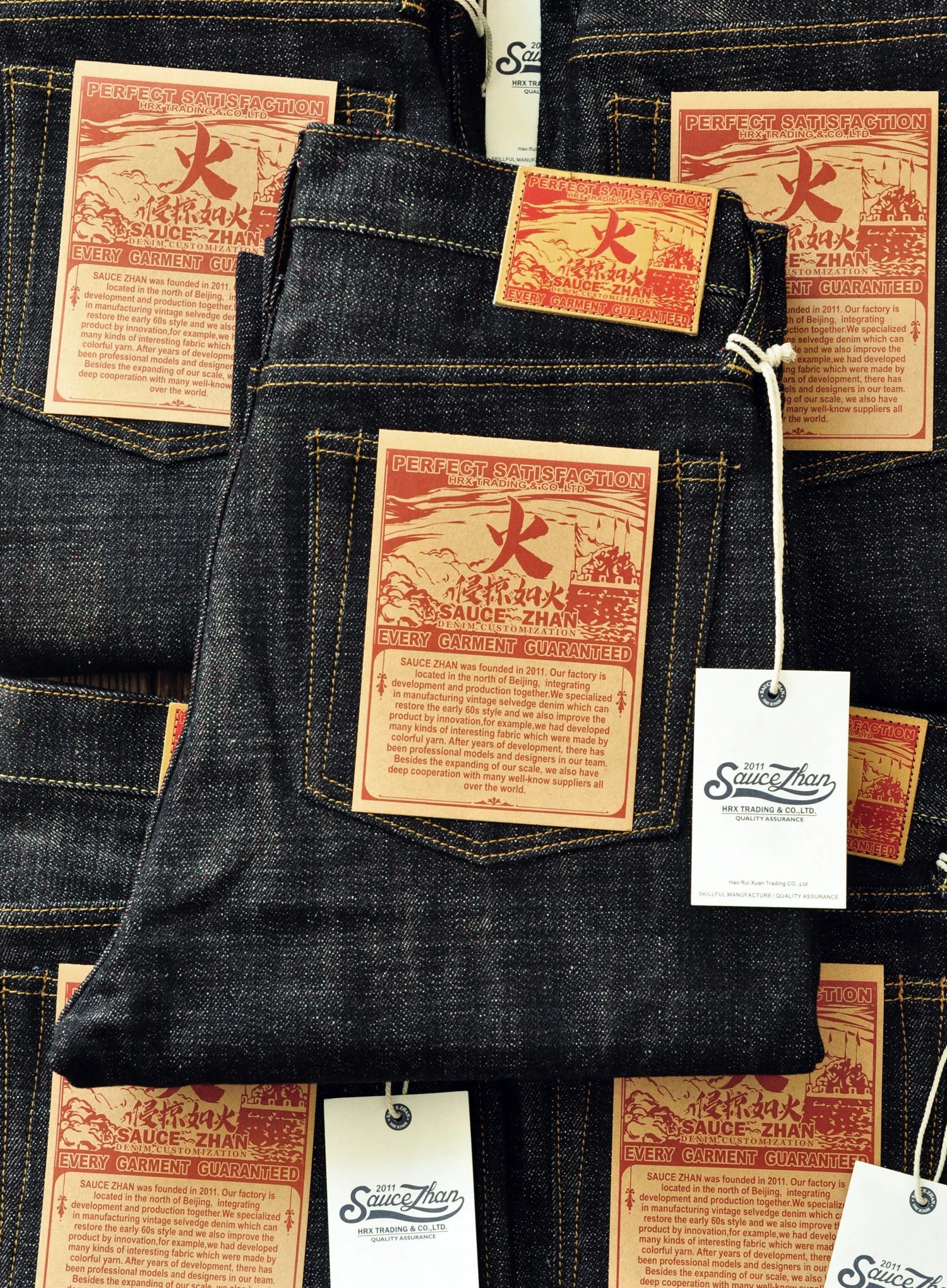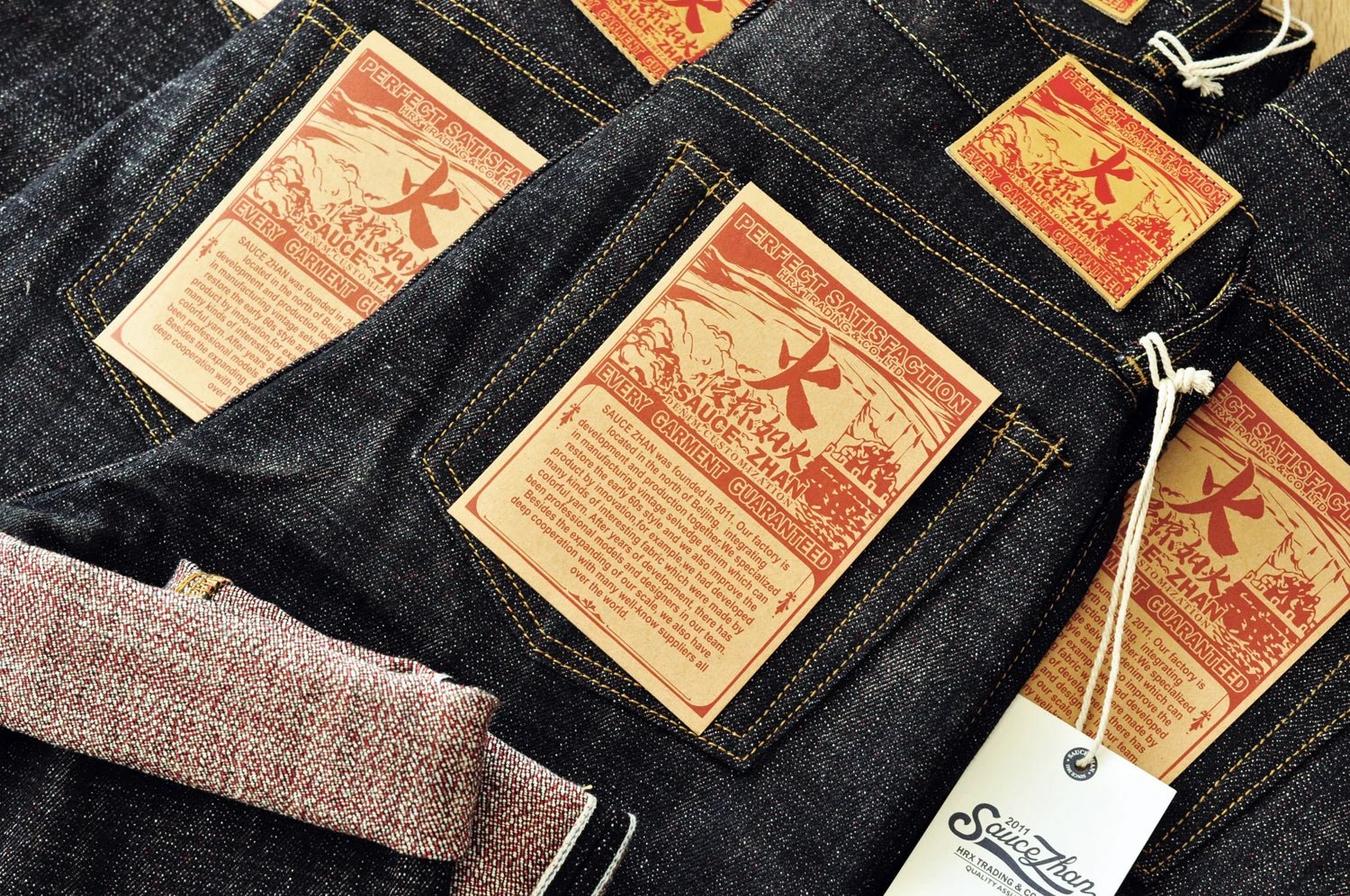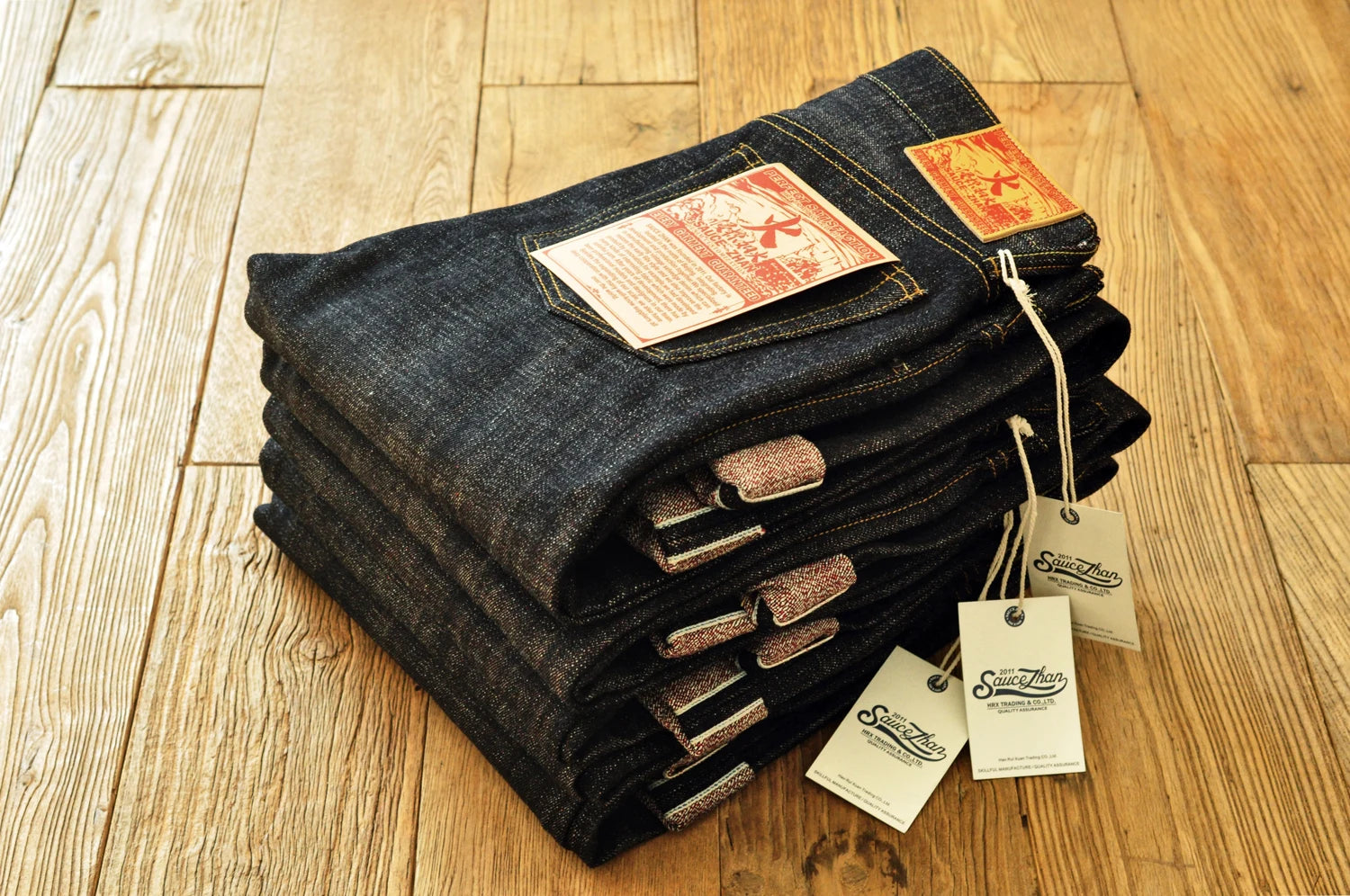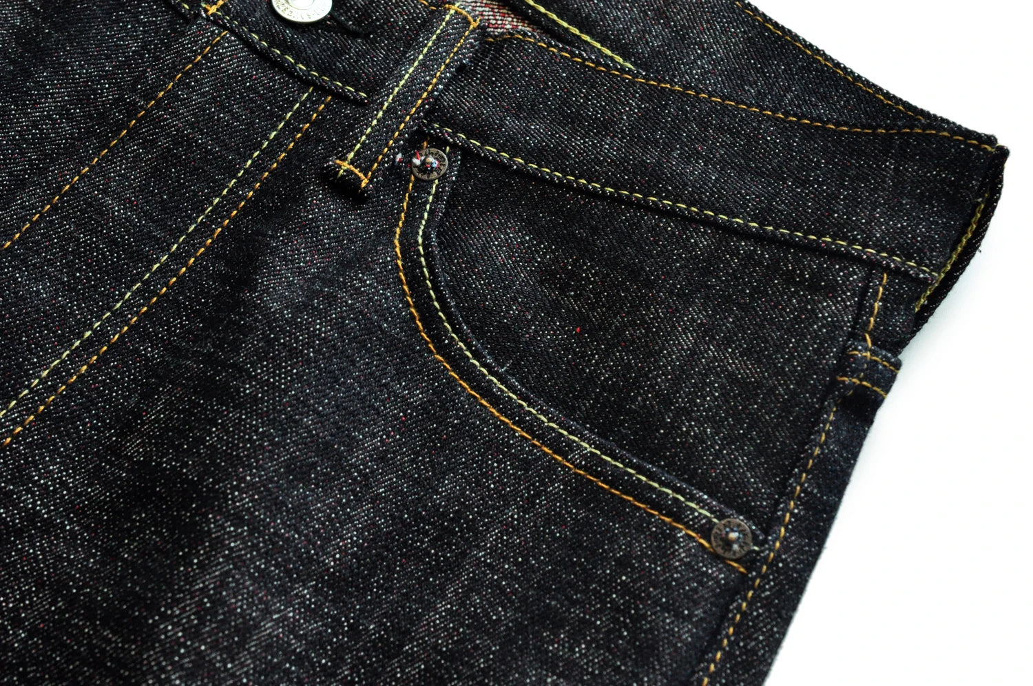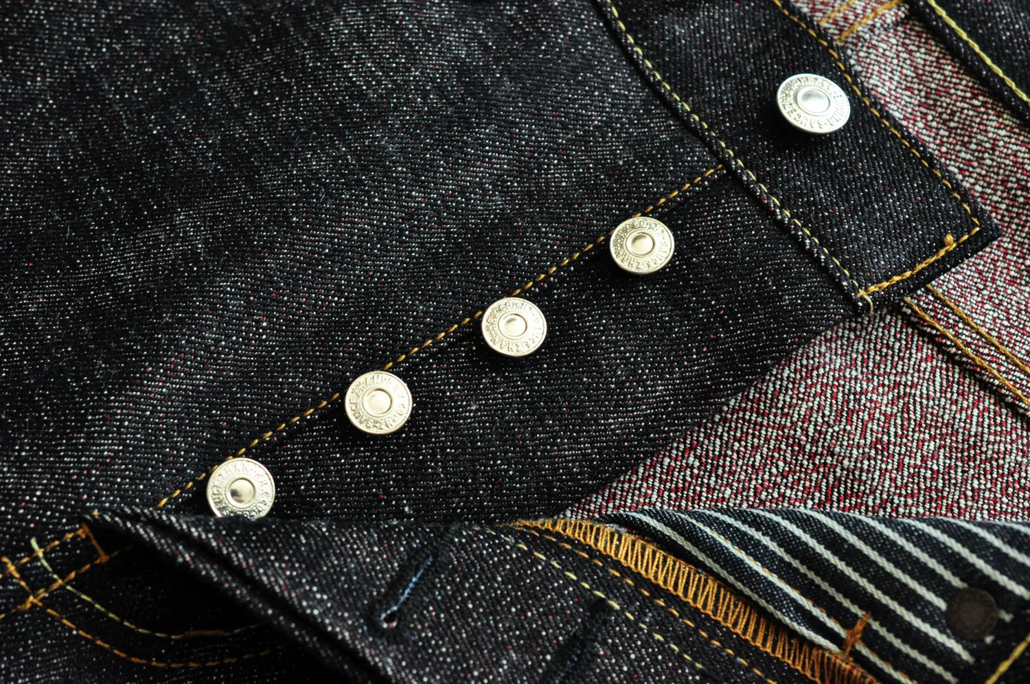 Herren Jeans im Taper Fit aus Raw Denim mit versilberten Knöpfen