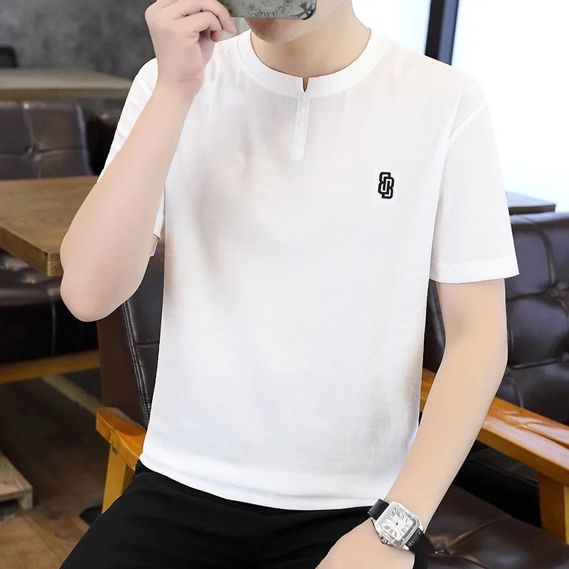 Herren T-Shirt mit Schwalbenschwanz-Kragen aus dünner Eis-Seide für den Sommer