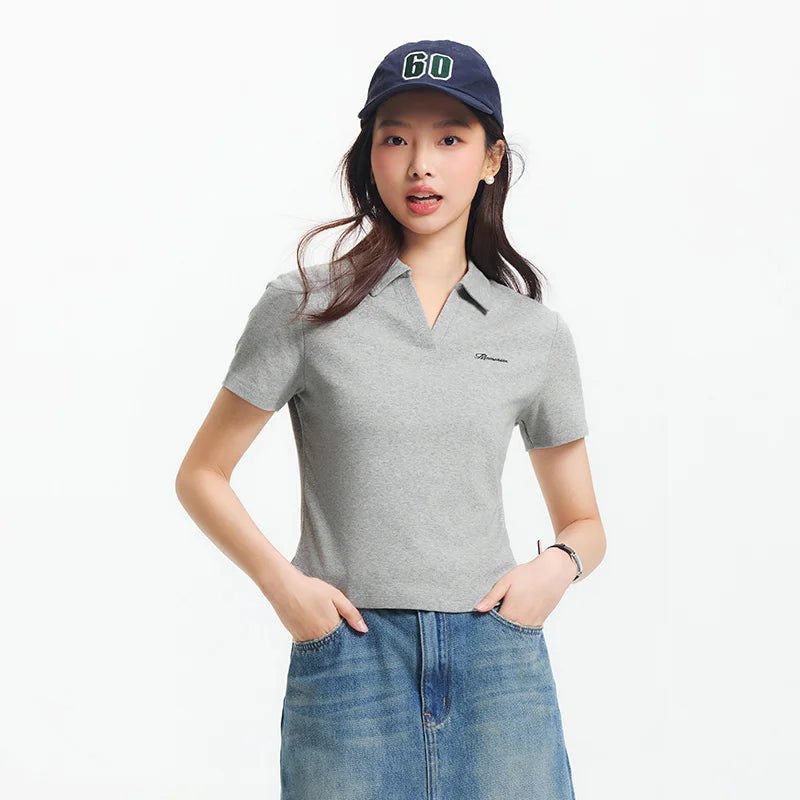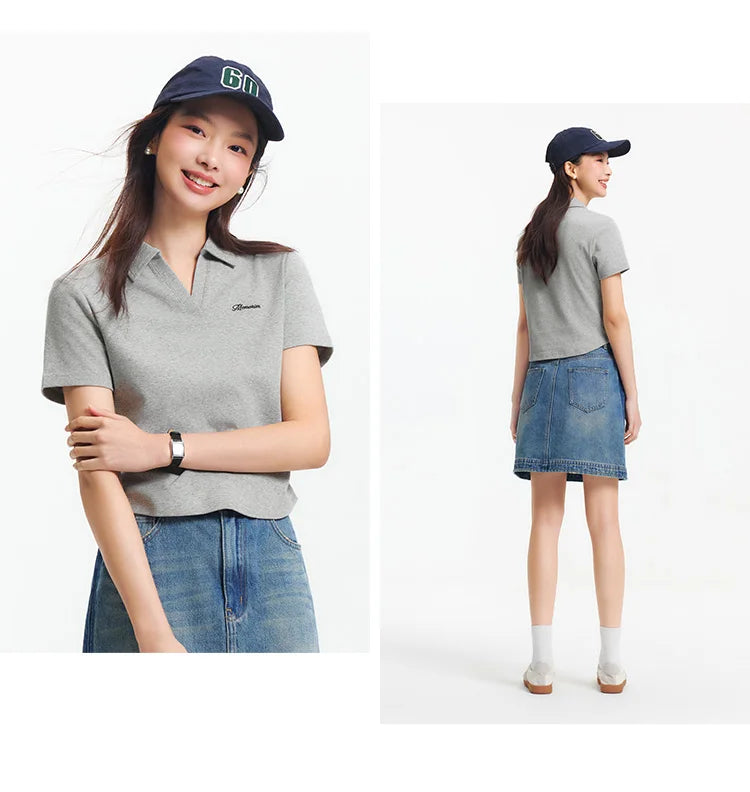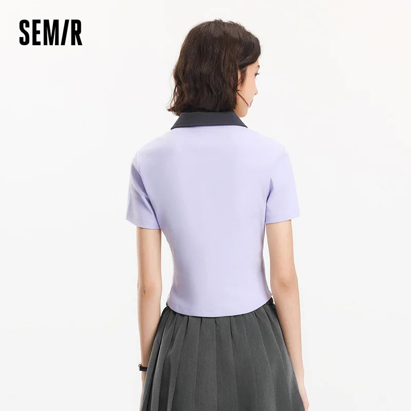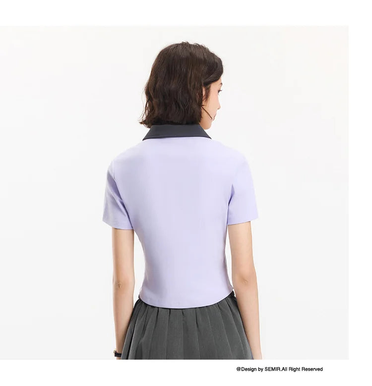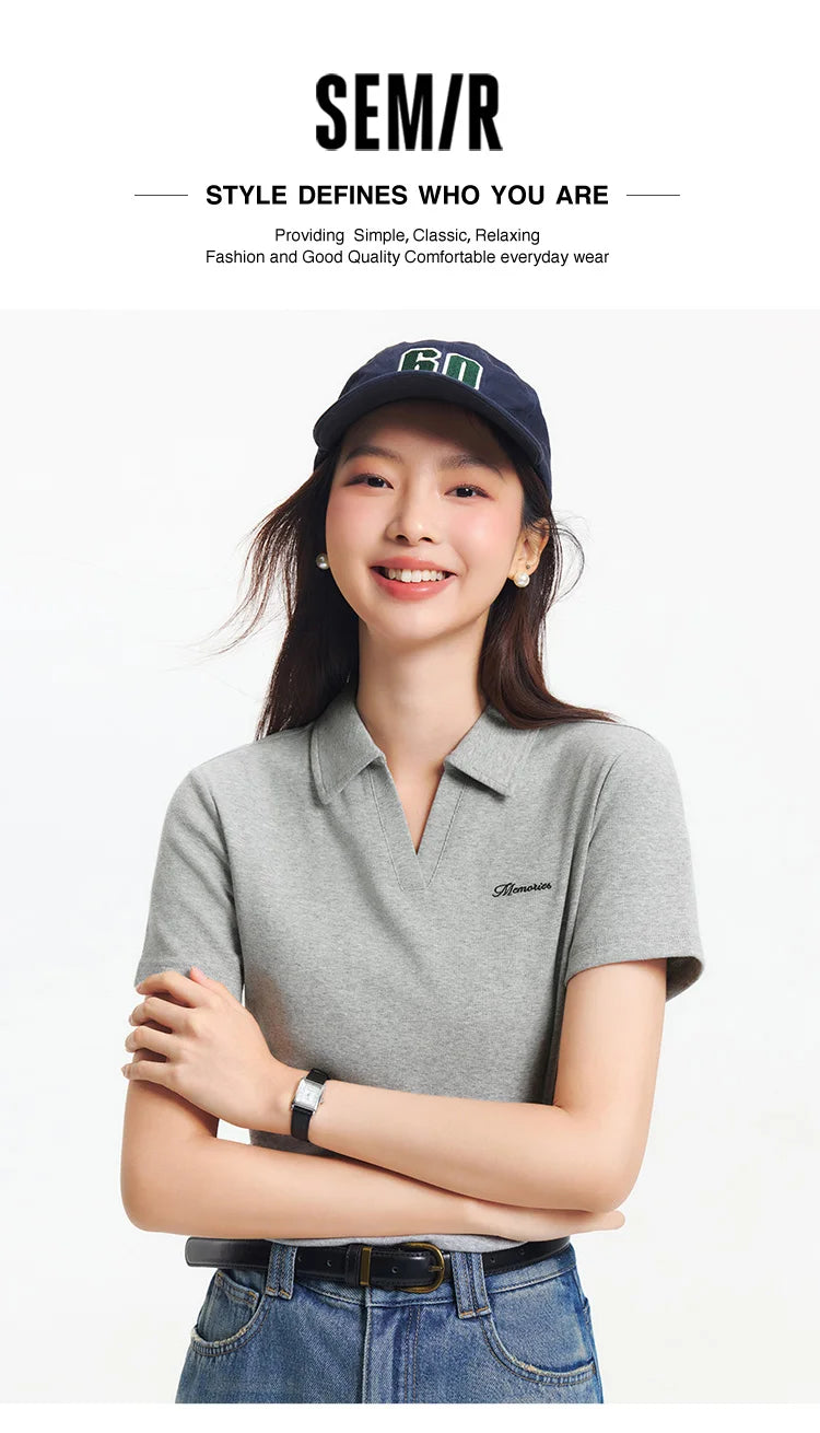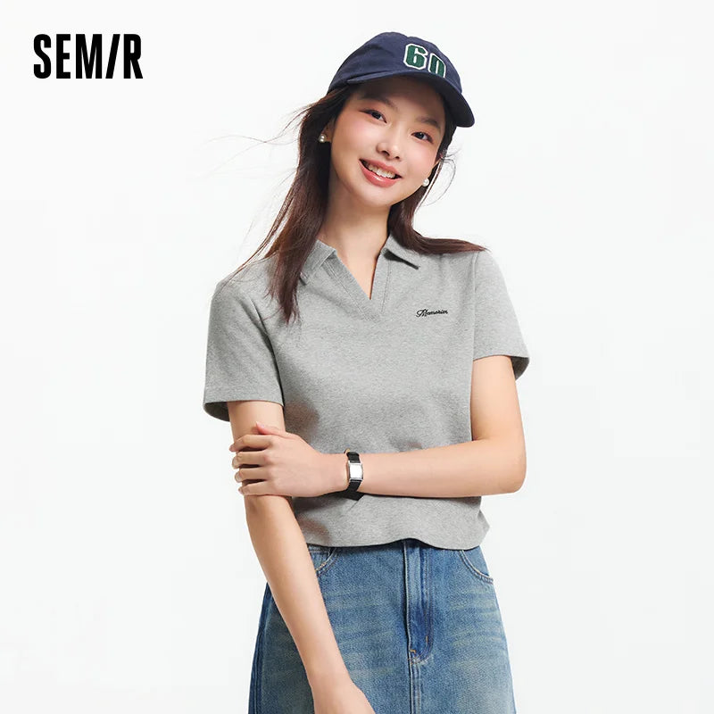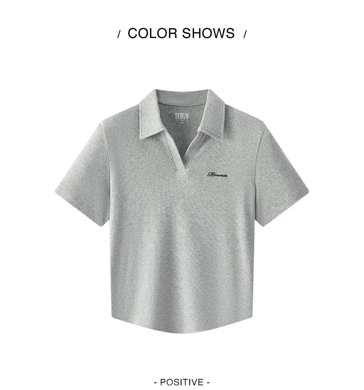 Semir Poloshirt für Damen, abgeschnitten, schmale Passform, elegant, 2025, neuer Sommer, bestickter Pullover, minimalistisch, für lässigen Stil