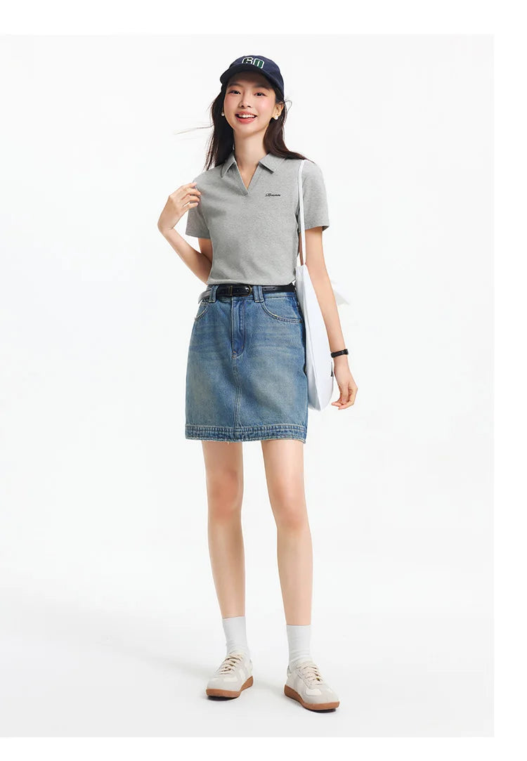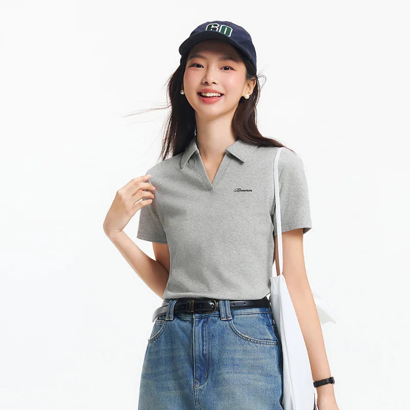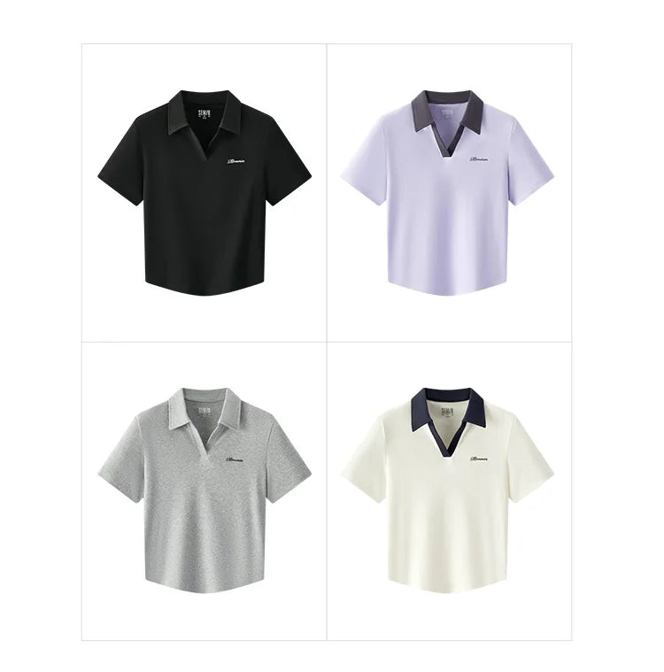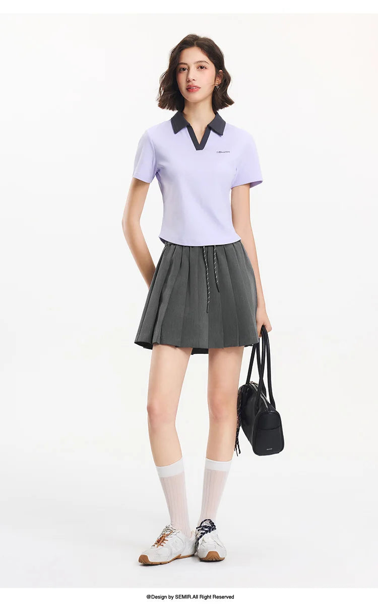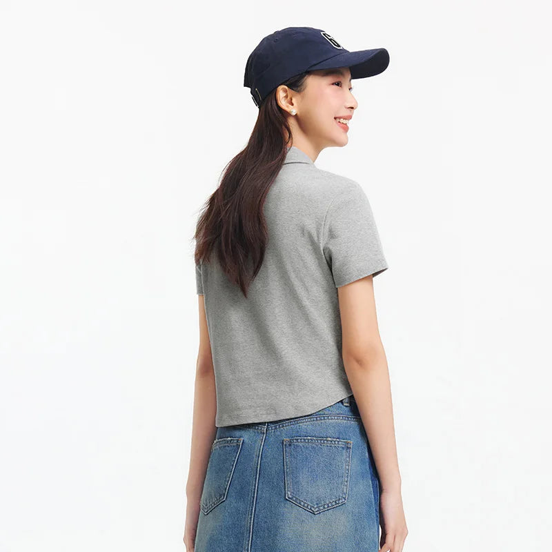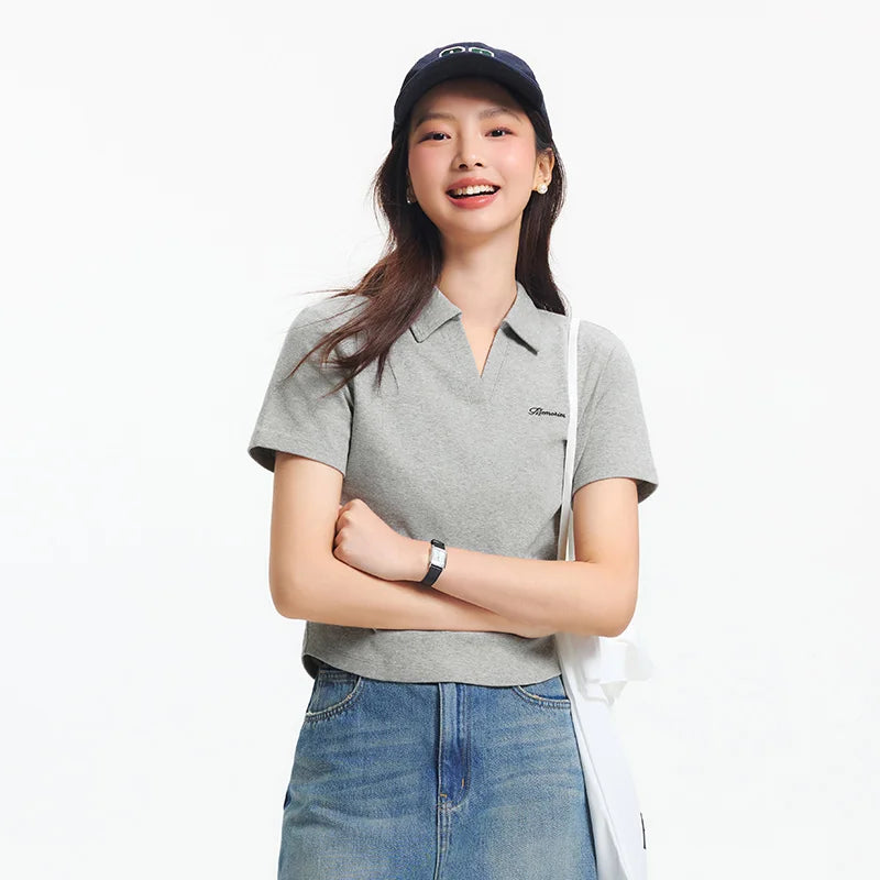 Semir Poloshirt für Damen, abgeschnitten, schmale Passform, elegant, 2025, neuer Sommer, bestickter Pullover, minimalistisch, für lässigen Stil