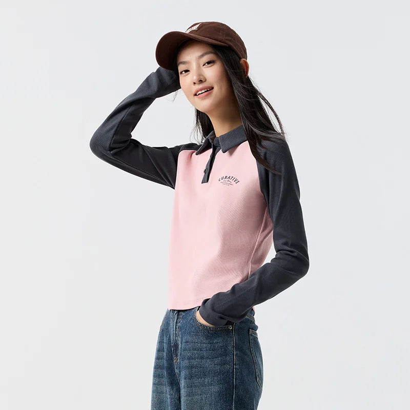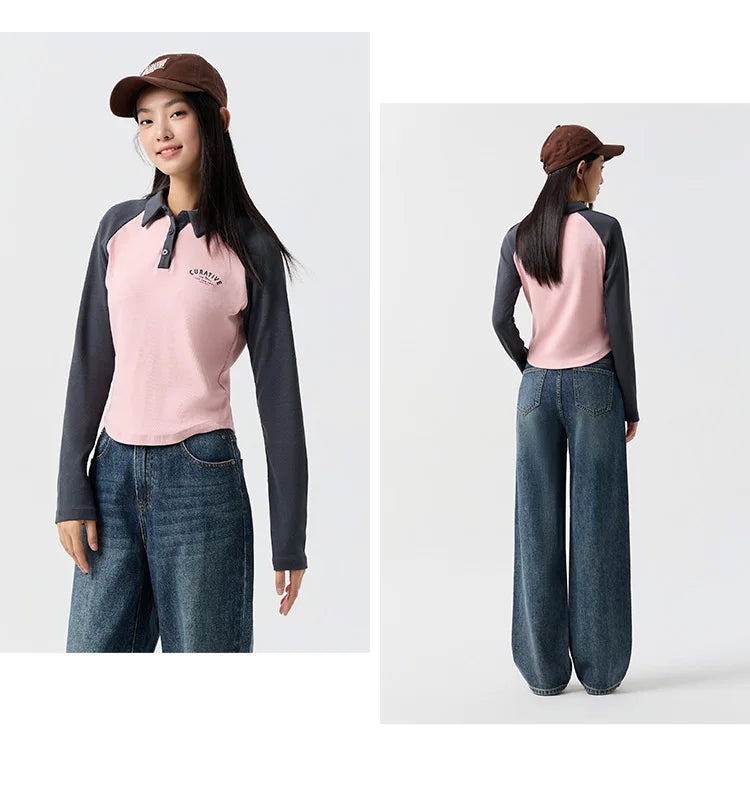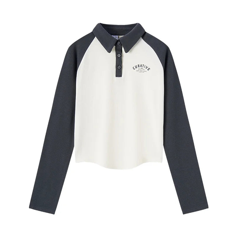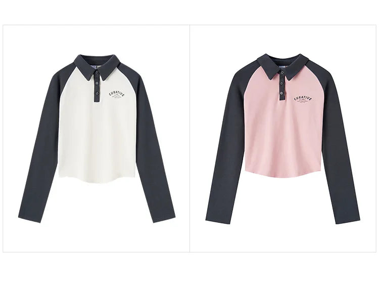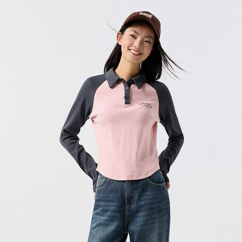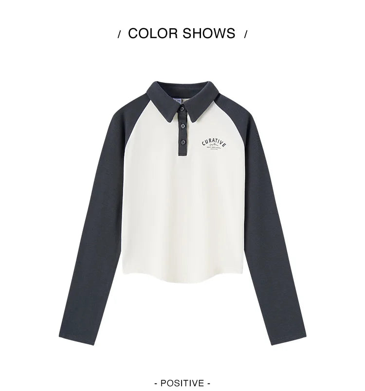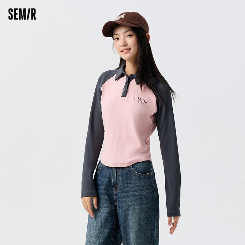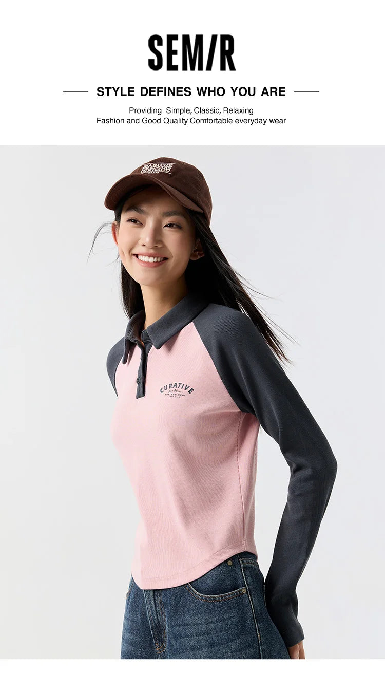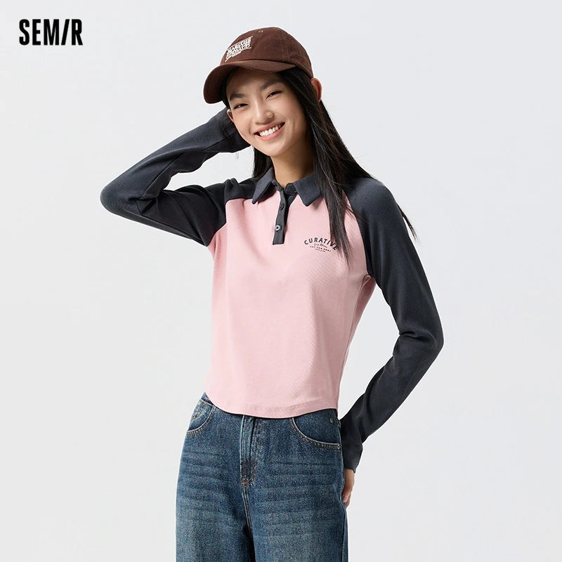 Semir Poloshirt für Damen, kurzer Stil, schmal, farbblockiert, Raglanärmel, 2024, Frühjahr, neues Oberteil mit Buchstabendruck