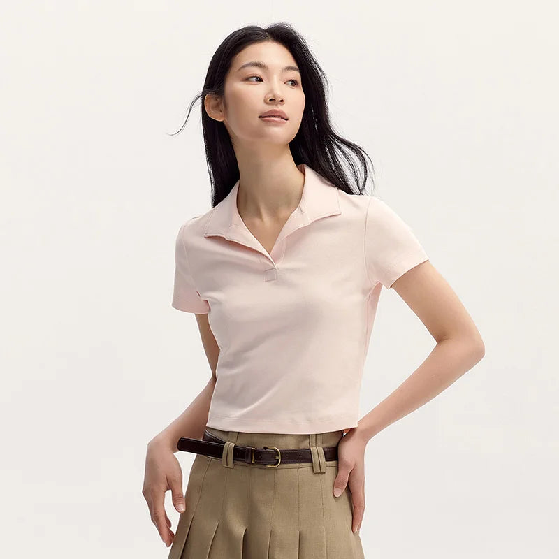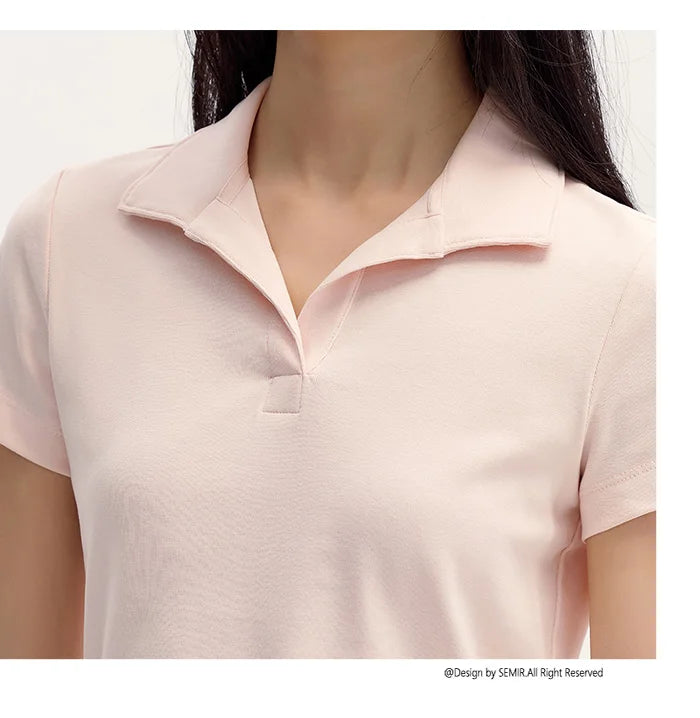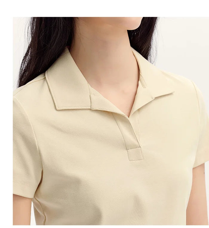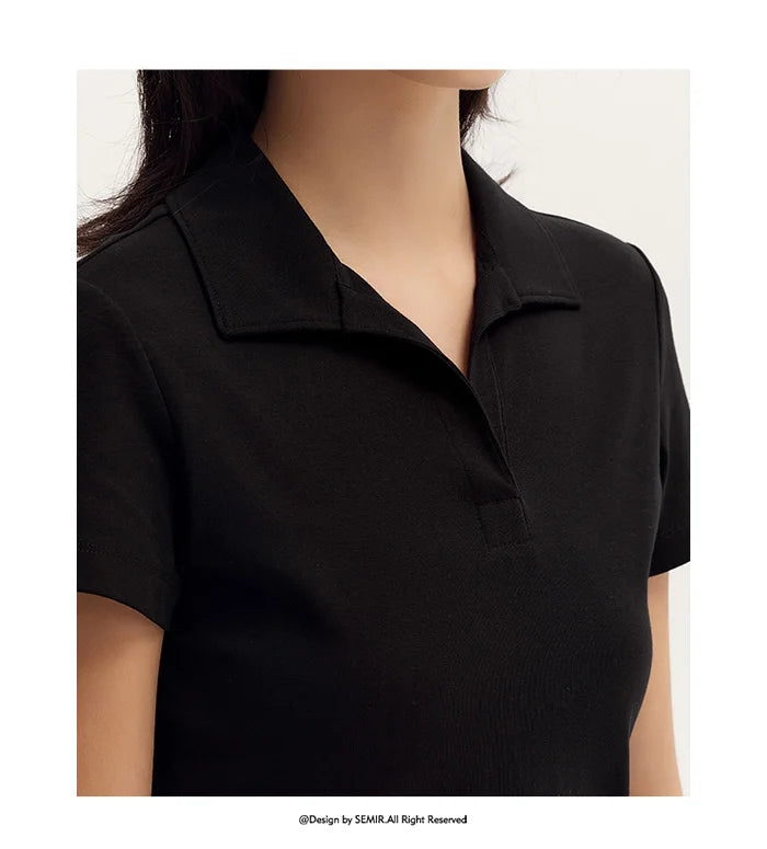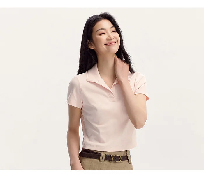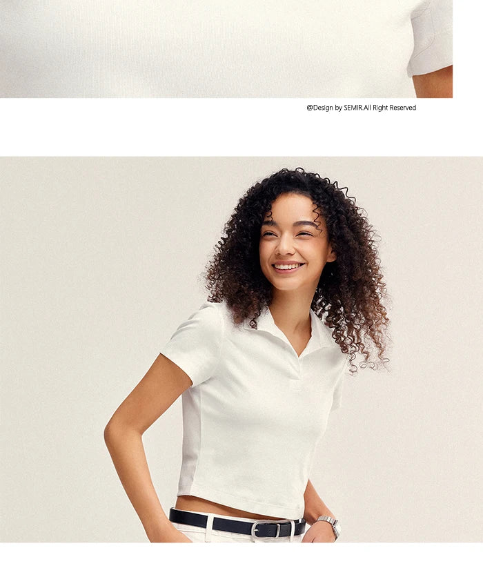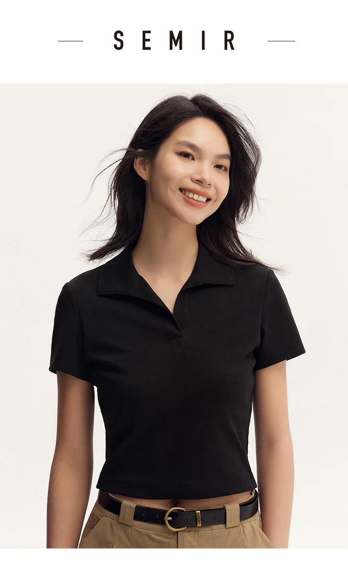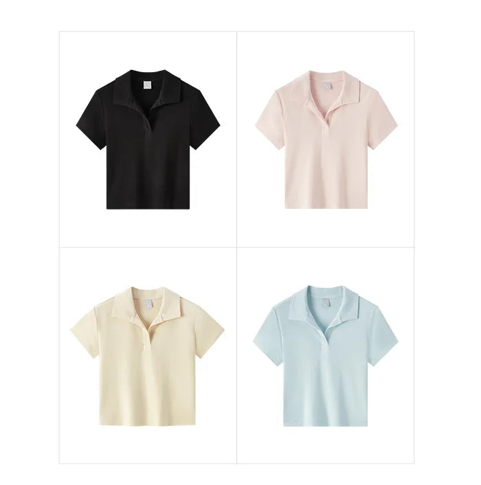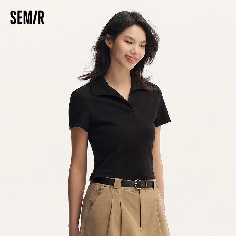 Senma Polos hirt Frauen Sommer Neuankömmling kurze einfarbige vielseitige Top schlanke gestrickte Polos hirt weiblich