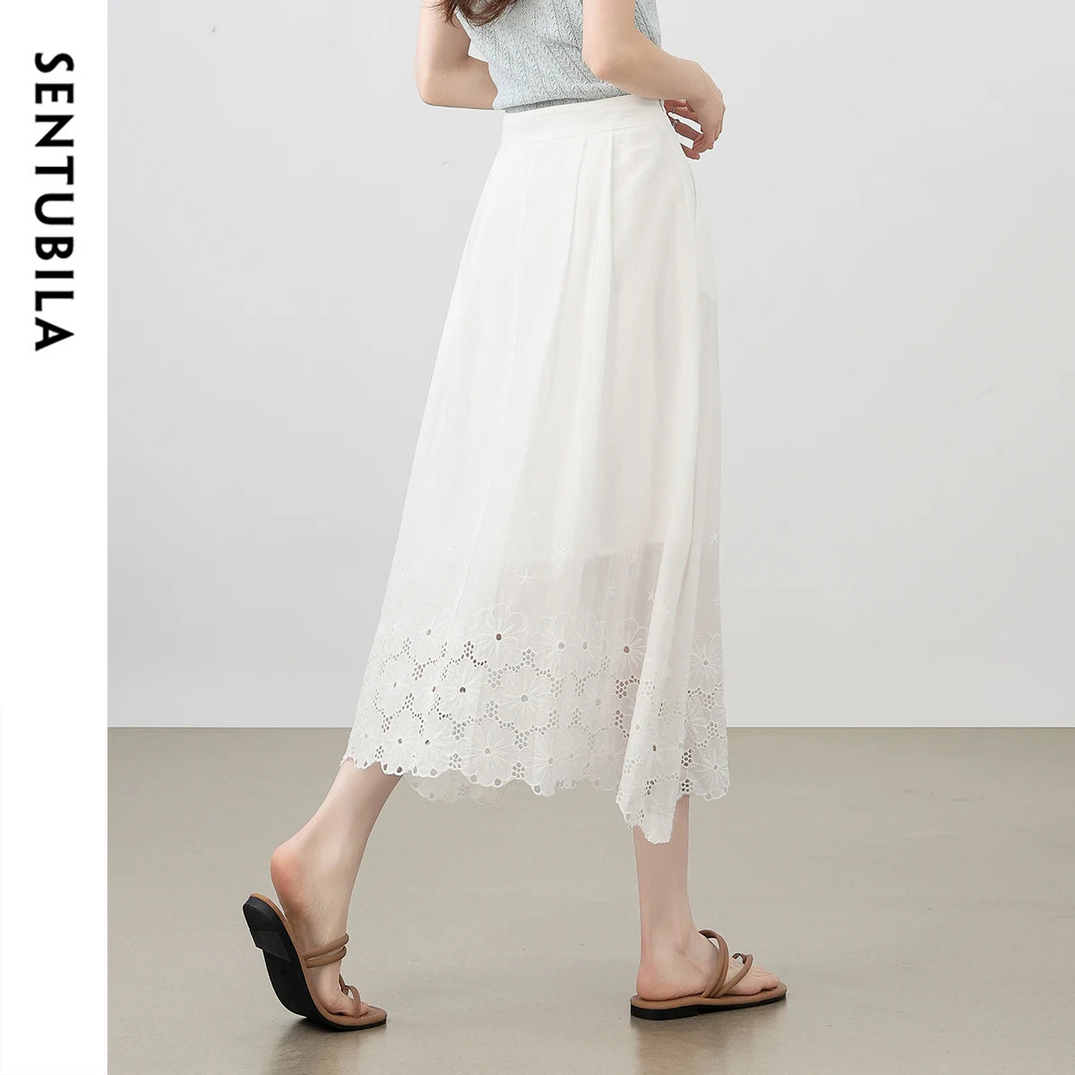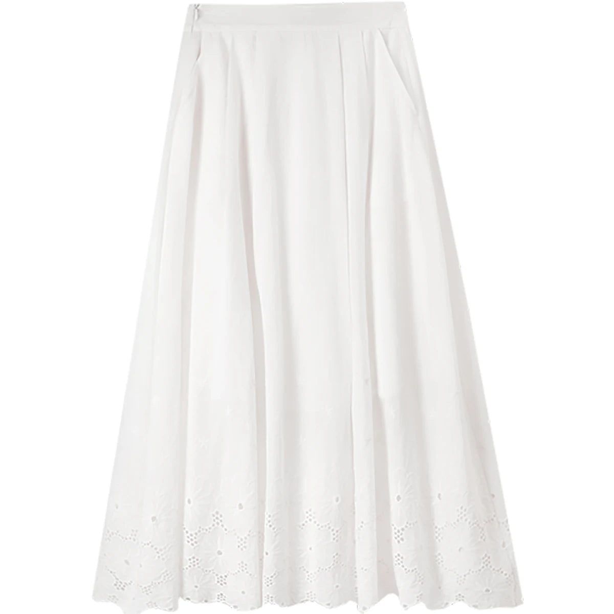 Damen Midirock aus 100 Prozent Baumwolle mit modischer hoher Taille und Stickerei