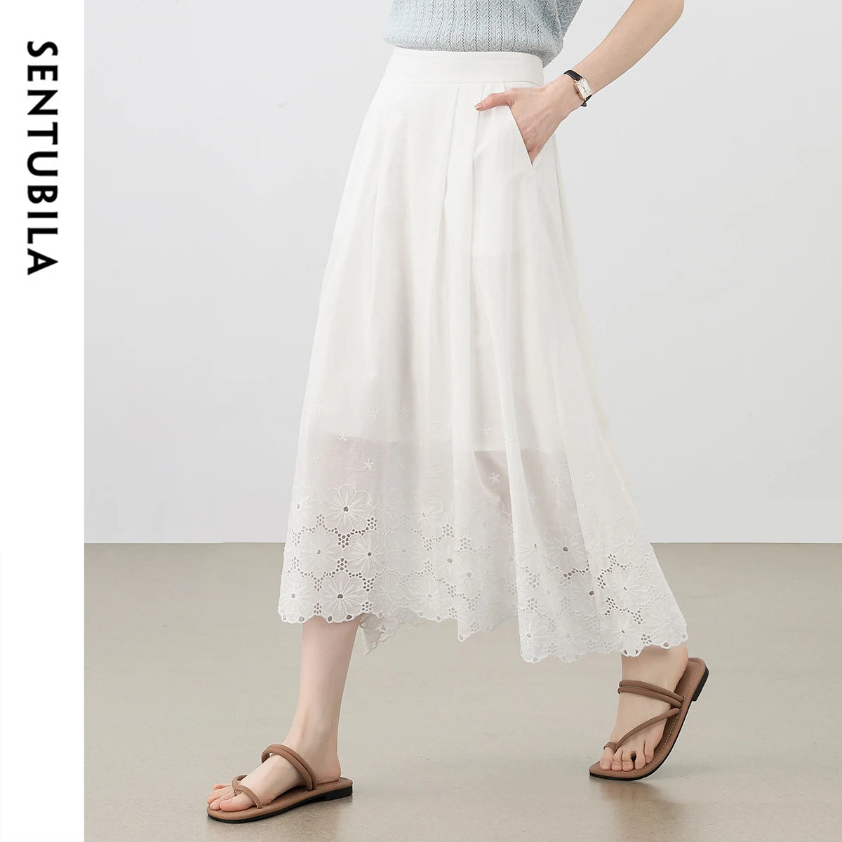 Dieser stilvolle Midirock von Sentubila verbindet modisches Design mit hervorragender Qualität. Hergestellt aus 100% Baumwolle, bietet dieser Rock nicht nur einen eleganten Look, sondern auch ein angenehmes Tragegefühl während des Frühlings und Sommers. Ideal für Pendler, die sowohl Komfort als auch Stil schätzen.