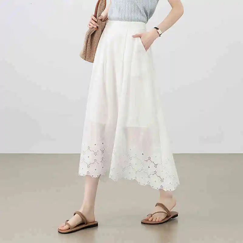 Damen Midirock aus 100 Baumwolle mit modischer hoher Taille und Stickerei