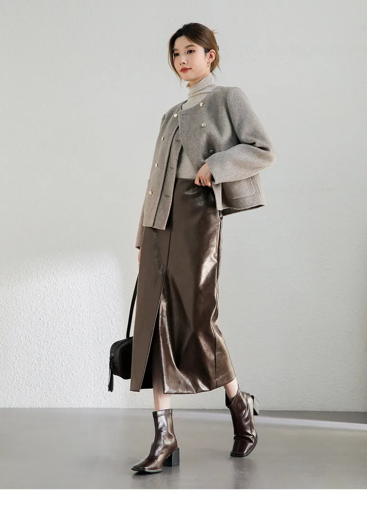 Leinenmischung Damenbluse mit Dreiviertelärmeln und Umlegekragen – ideal fürs Büro und den Alltag