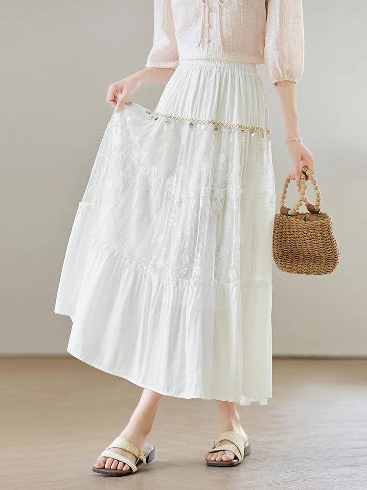 Der SENTUBILA Damen-Sommer-elegante hohe Taille kombiniert Stil und Komfort und ist das perfekte Kleidungsstück für die warme Saison. Mit seinem einzigartigen Design aus Spleißen und Spitze verleiht dieser A-Linien-Rock jedem Outfit eine feminine Note und sorgt für bewundernde Blicke.