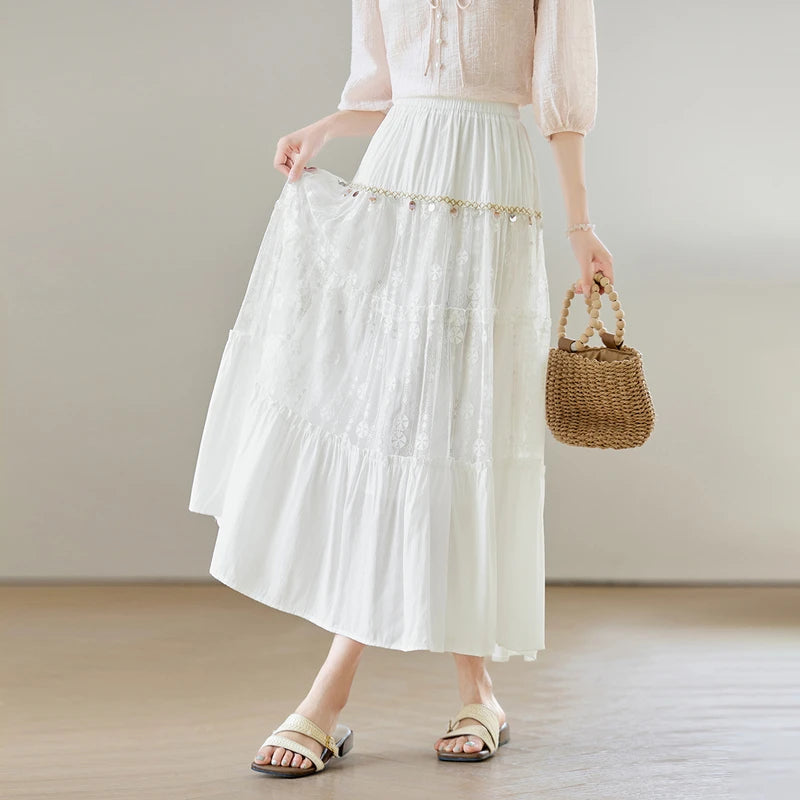 Der SENTUBILA Damen-Sommer-elegante hohe Taille, lange Rock vereint Stil und Komfort in einem einzigartigen Design. Dieser atemberaubende A-Linien-Rock aus hochwertigem Gewebe ist die perfekte Wahl für warme Sommertage. Mit seinem eleganten Schnitt und der raffinierten Spitzenverzierung verleiht er jedem Outfit eine feminine Note.