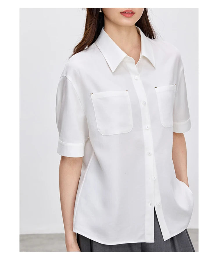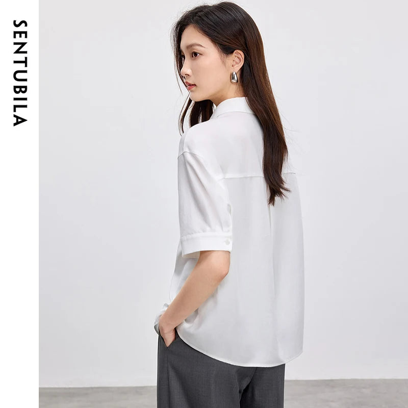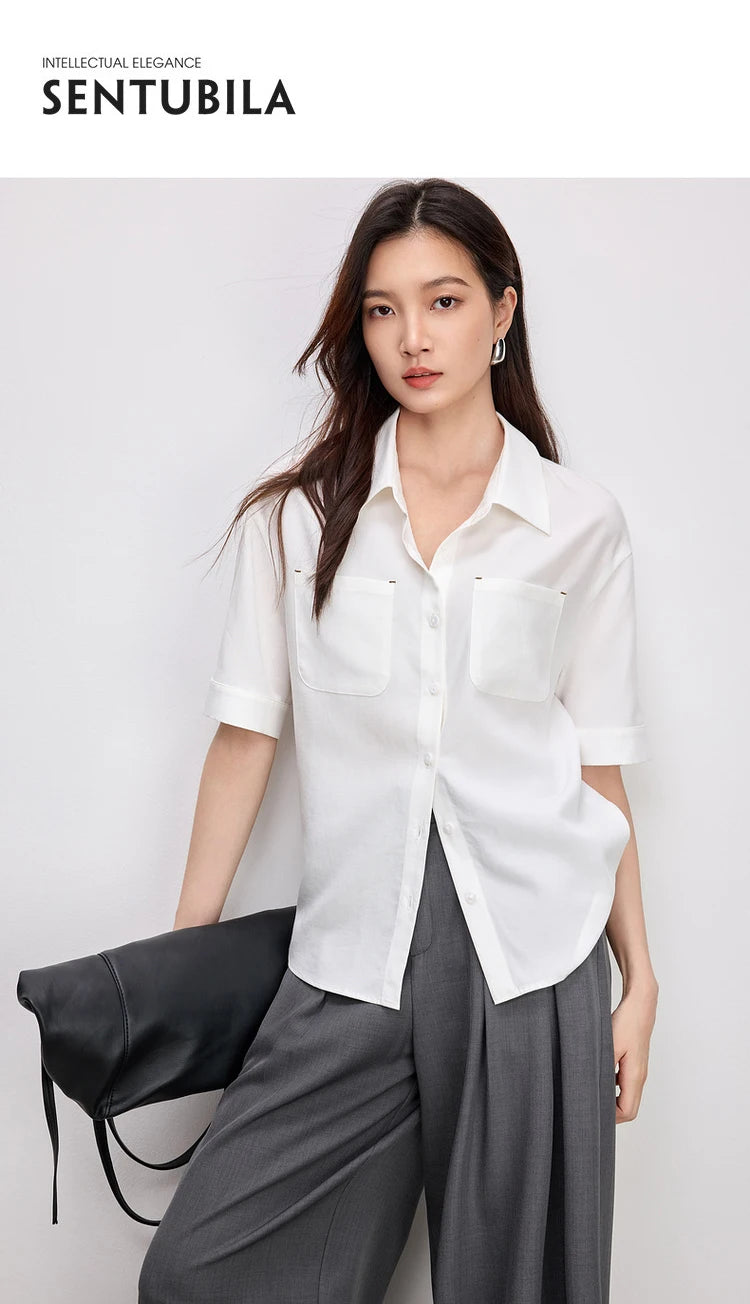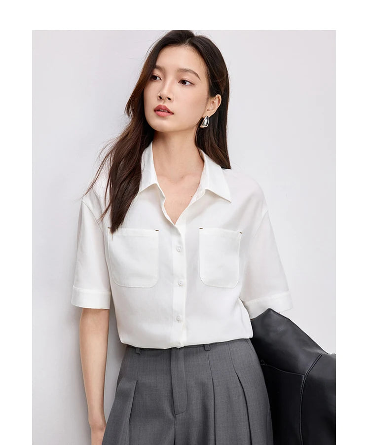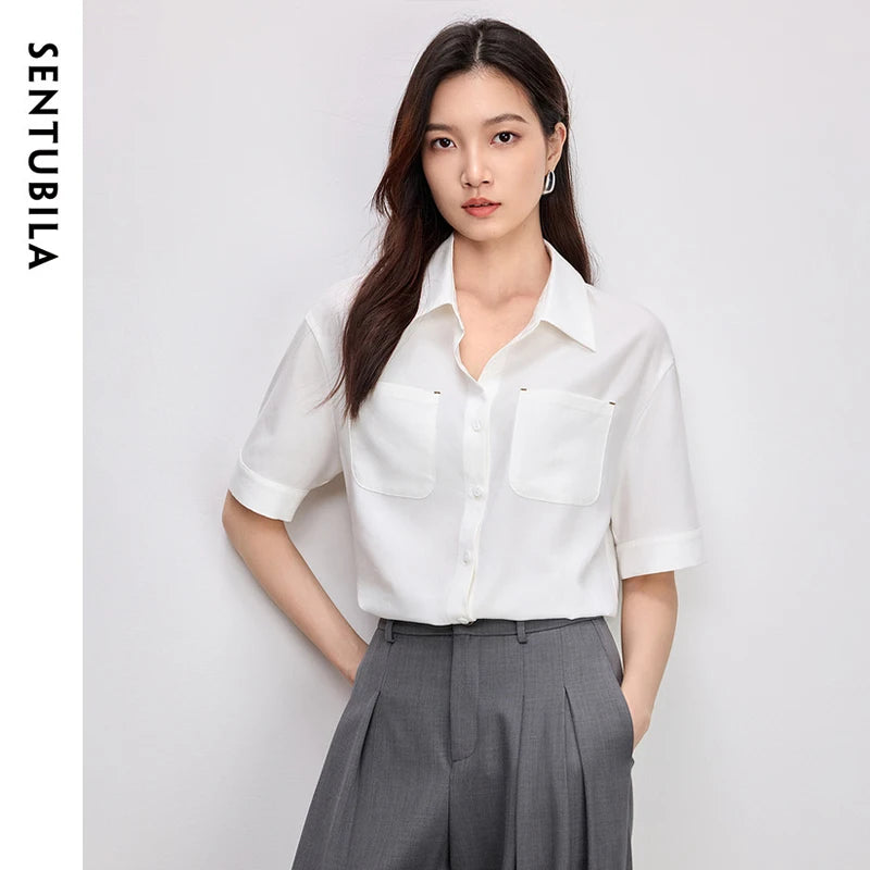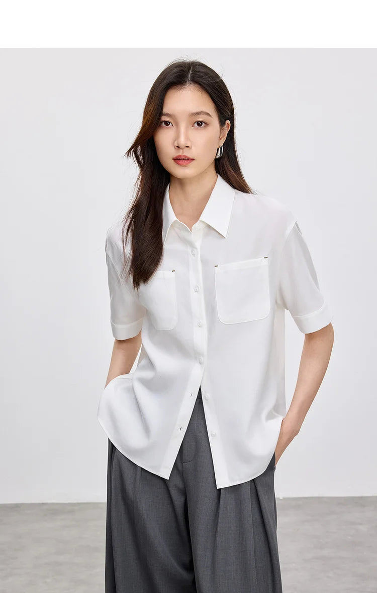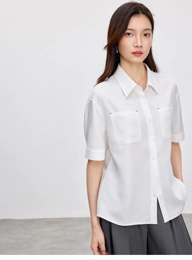 Ärmelloses Damenhemd mit Umlegekragen und Knopfleiste – ideal für den Büroalltag