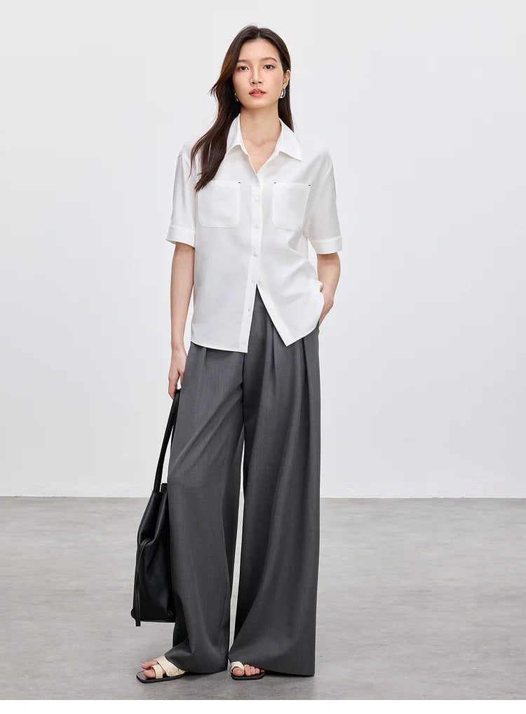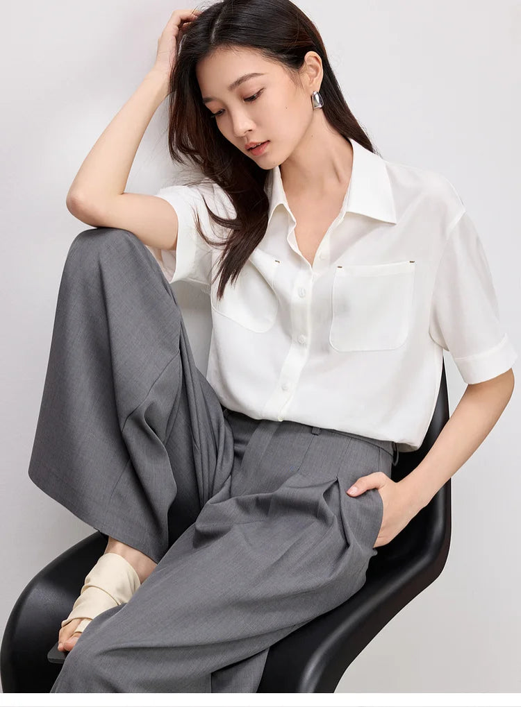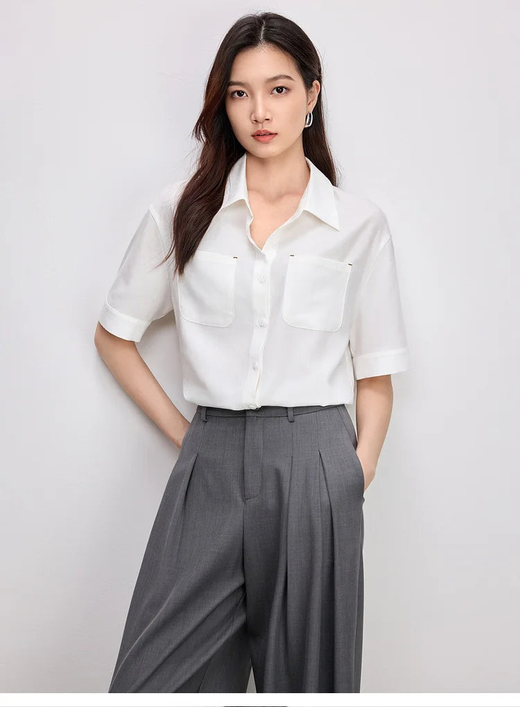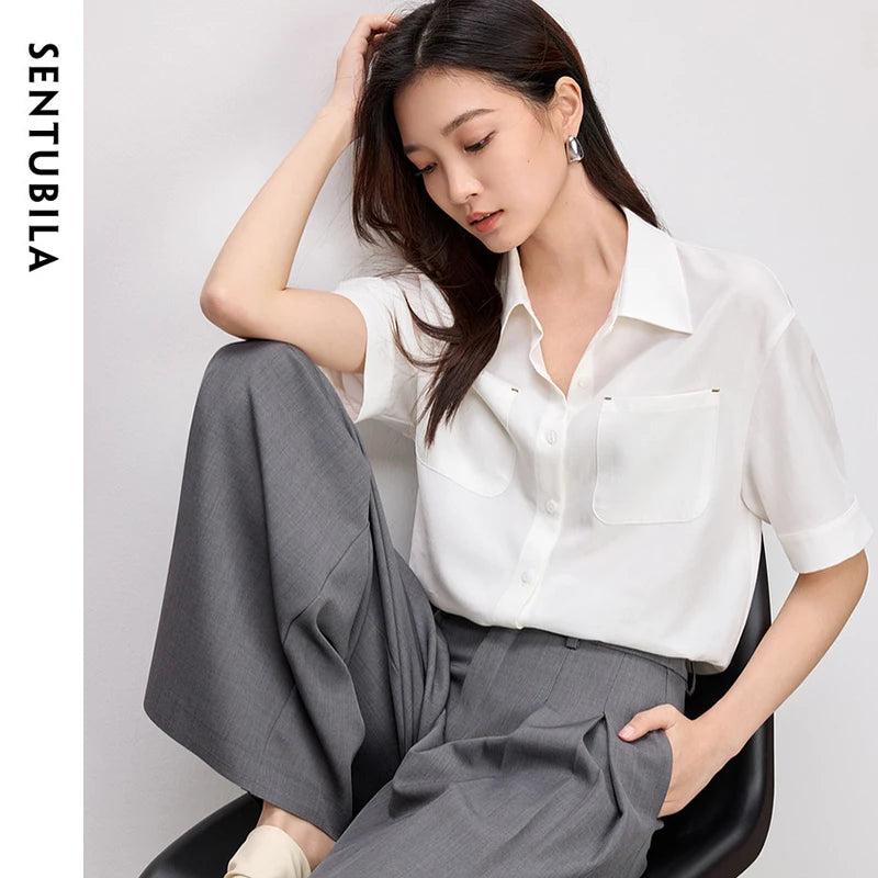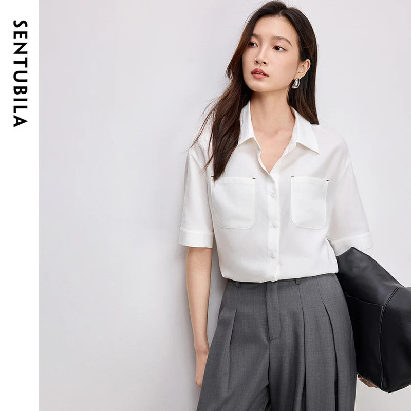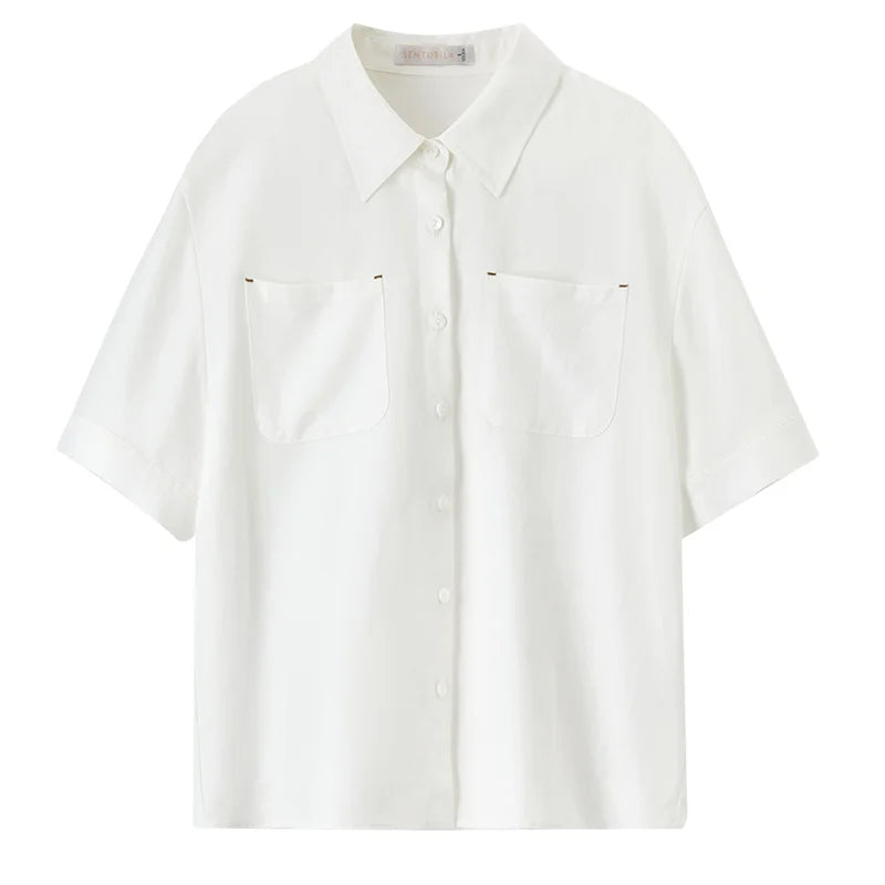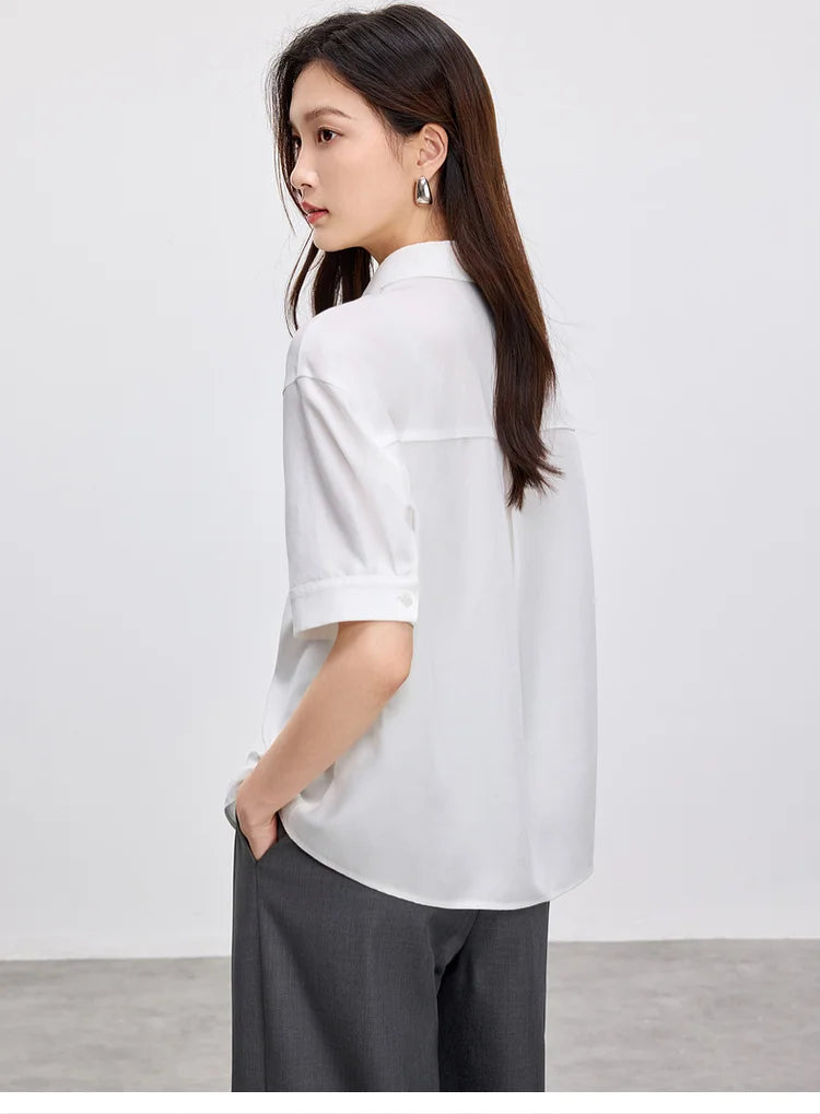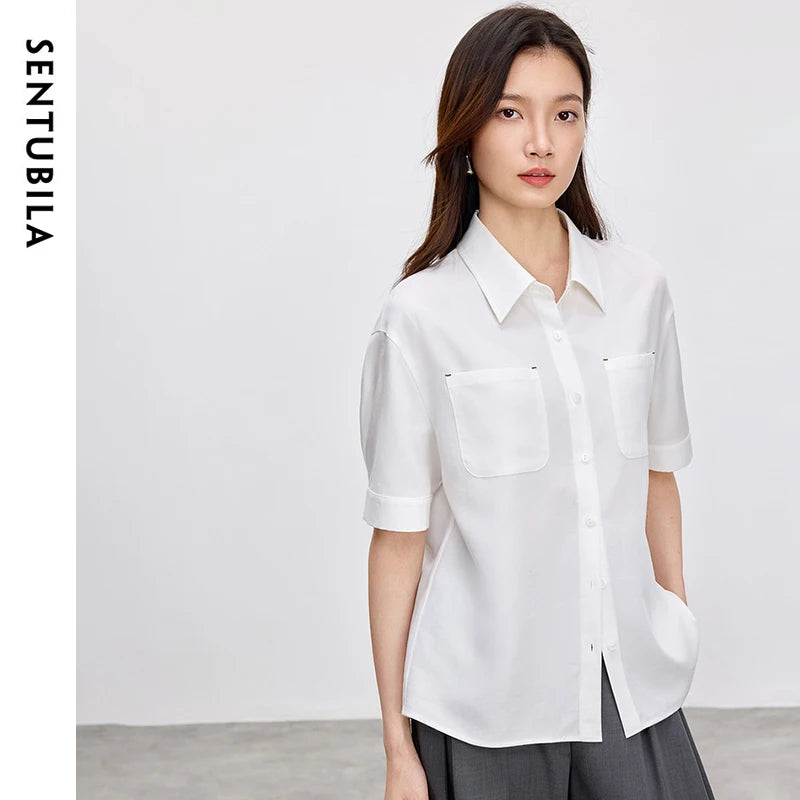 Ärmelloses Damenhemd mit Umlegekragen und Knopfleiste – ideal für den Büroalltag