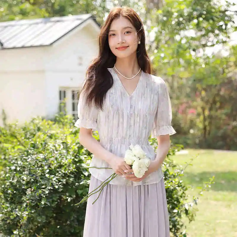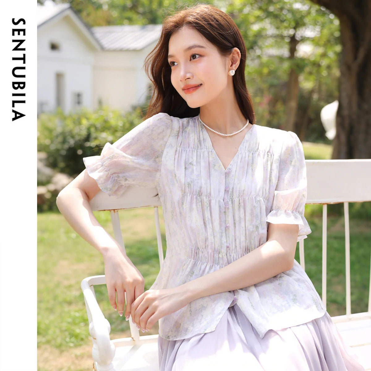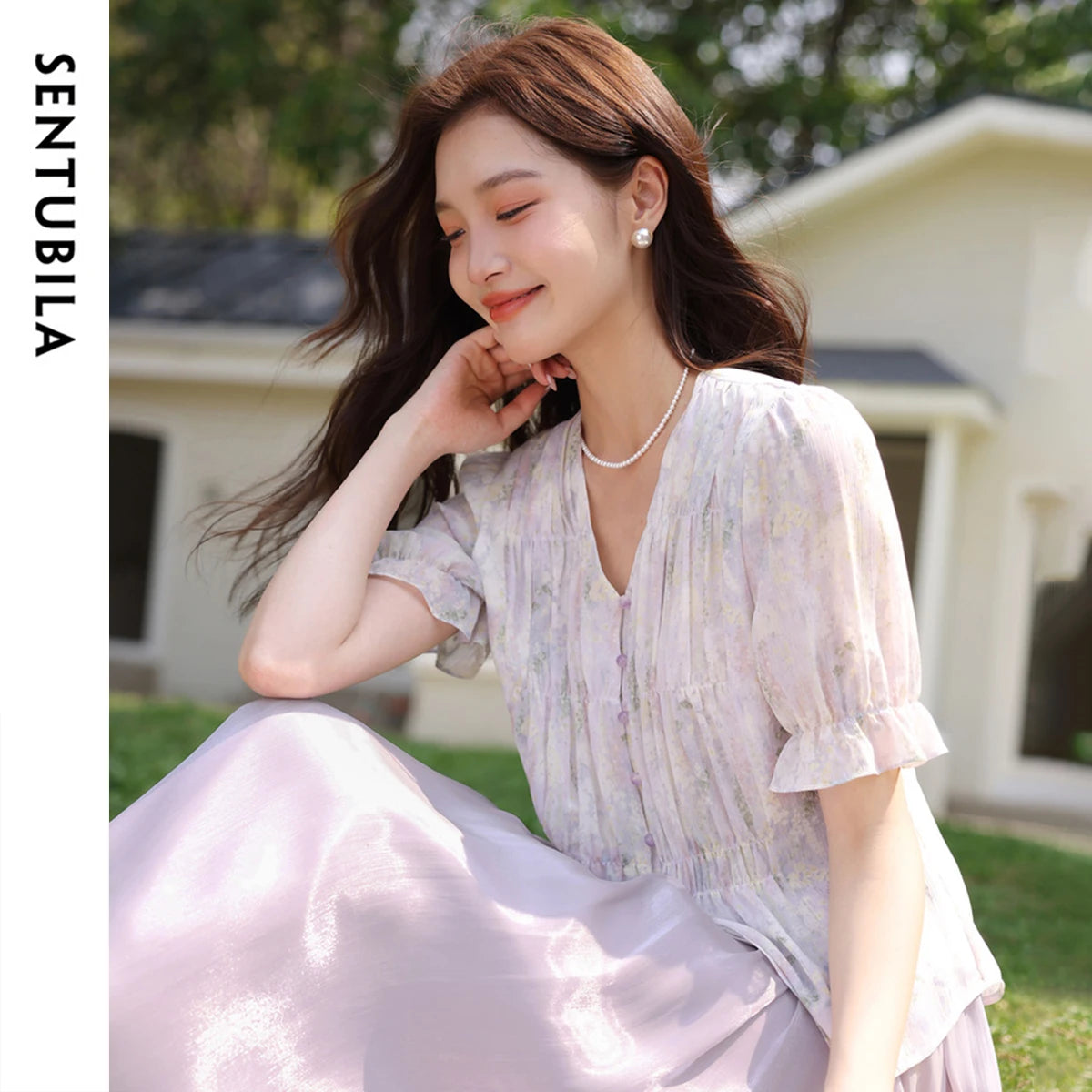 Damen-Lyocell-Bluse mit Reverskragen und Druckmuster – Einreihig und Komfortabel für Frühling und Sommer