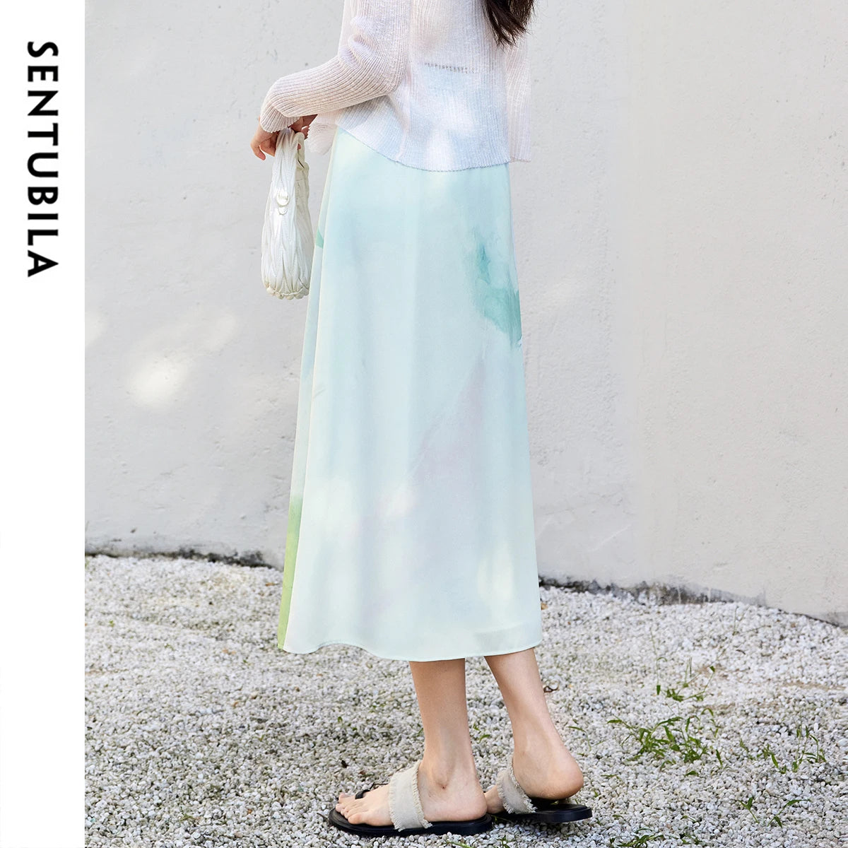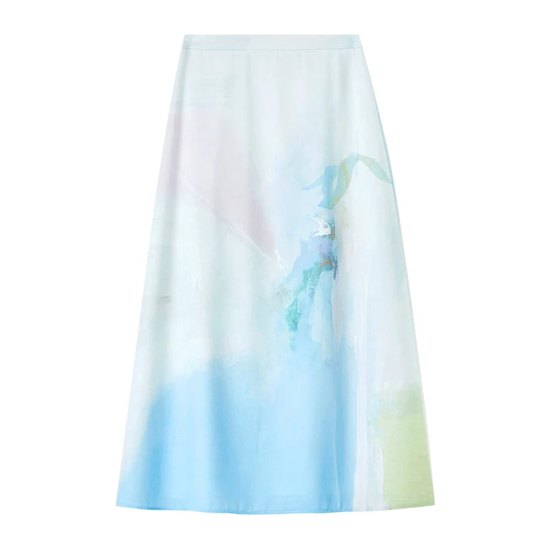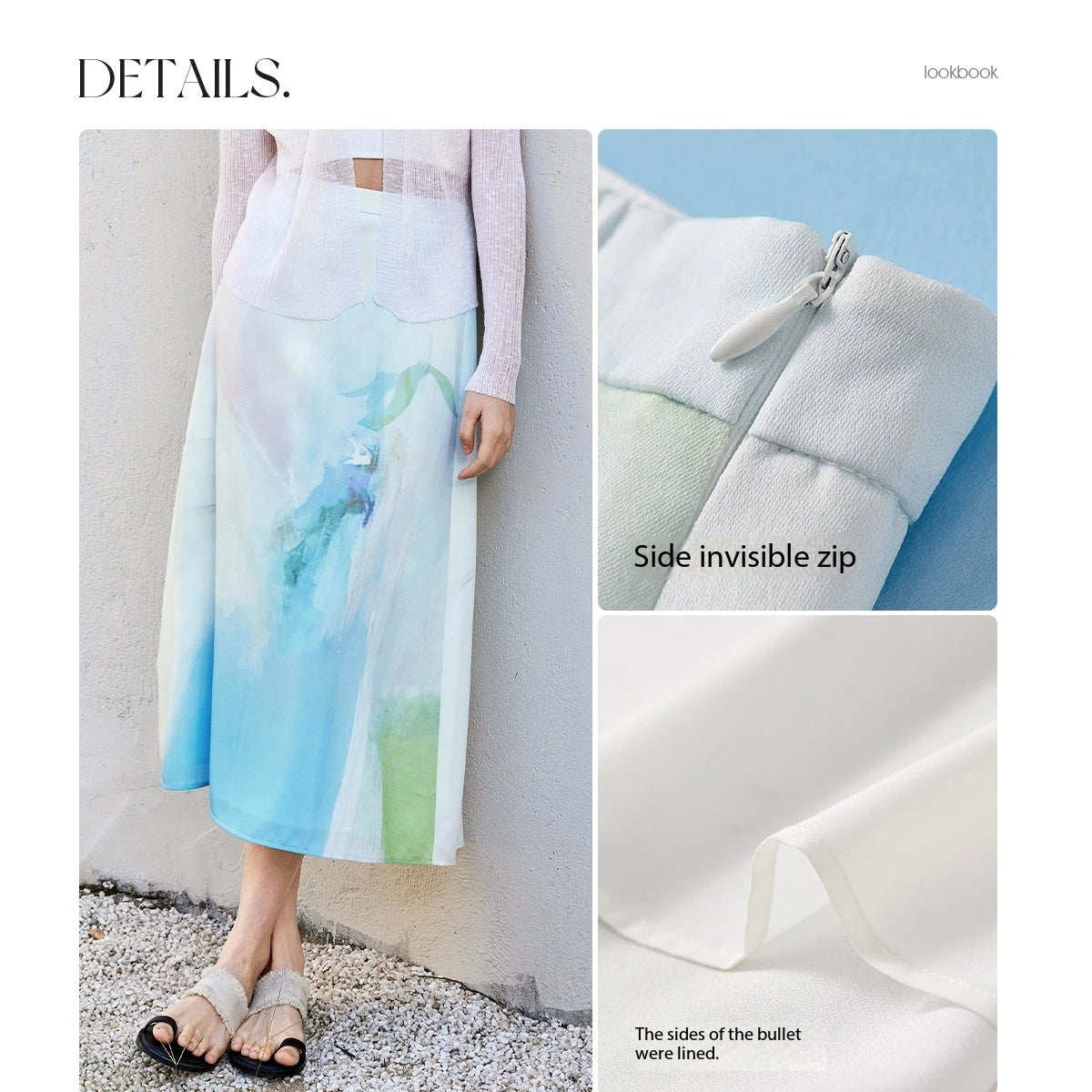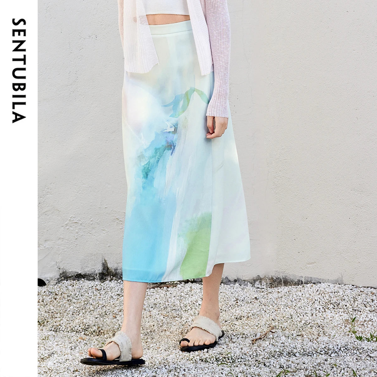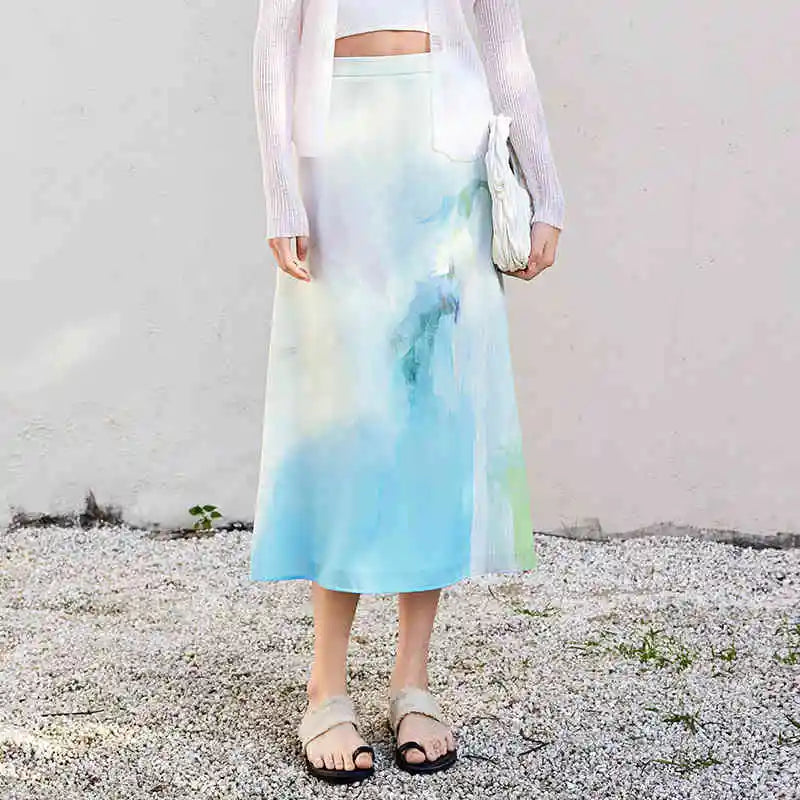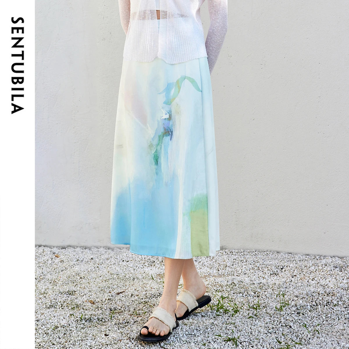 Dieser Rock von Sentubila vereint elegantes Design mit einem künstlerischen Druck, ideal für die Frühlings- und Sommermonate. Mit seinem stilvollen Farbverlauf in Blau und der A-Linie schmeichelt er jeder Figur und ist perfekt für einen Urlaub oder einen geschäftlichen Anlass.