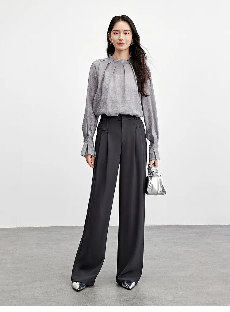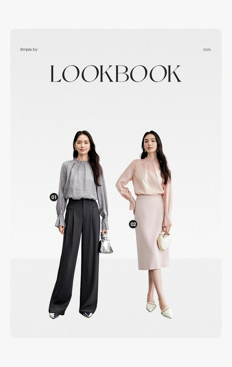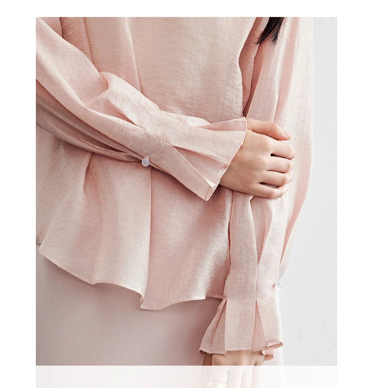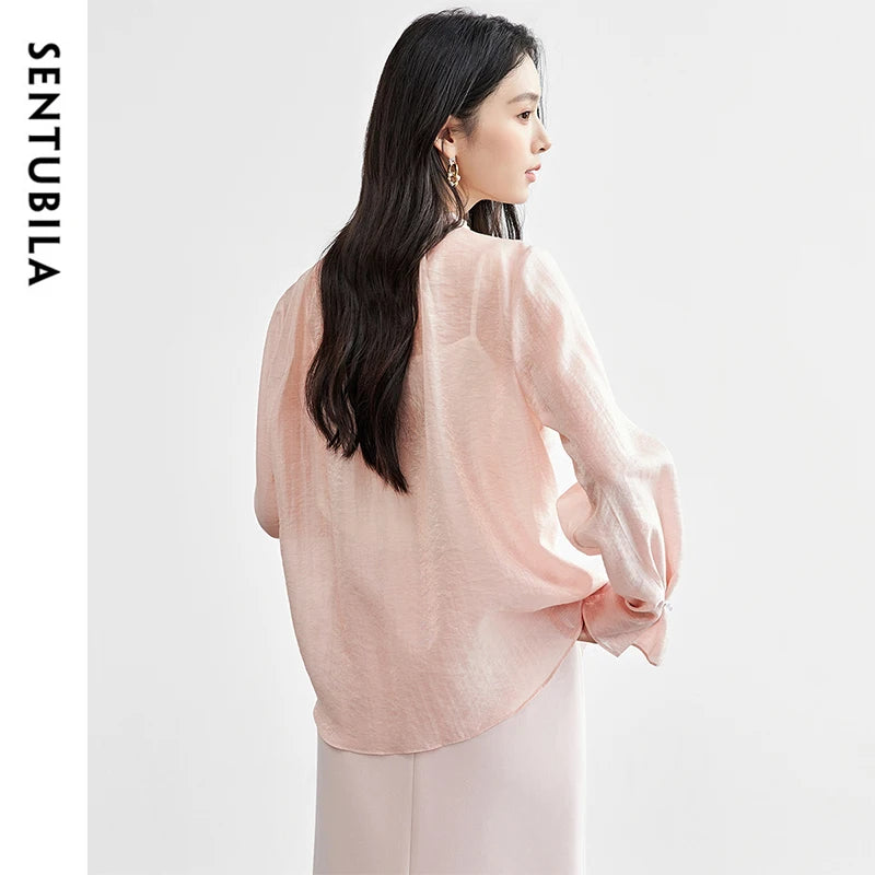 Elegante Vintage-Chiffonbluse mit Print und langen Ärmeln – lockerer Schnitt für Frühling und Herbst