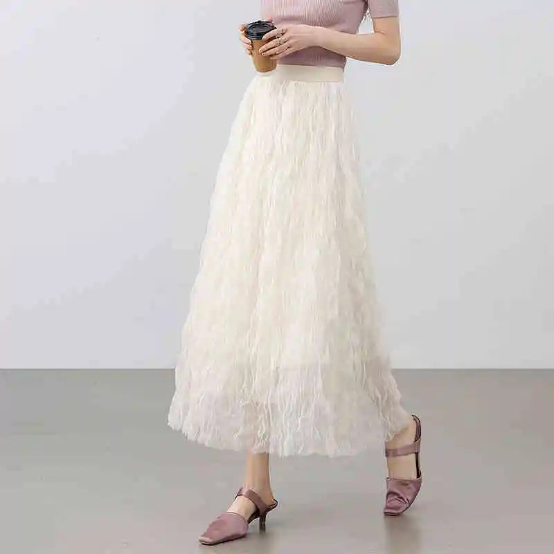 Damen Netzrock im süßen Stil mit hoher Taille und Rüschen