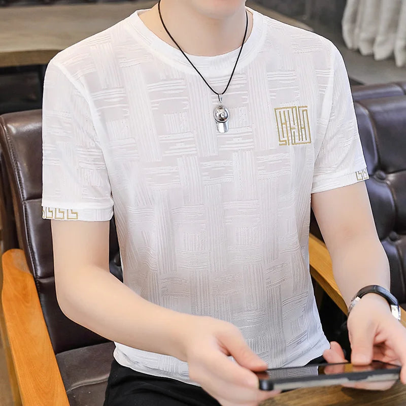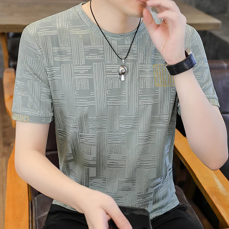 Herren T-Shirt aus Seide mit kurzem Arm und Streifen-Druck für Sommer