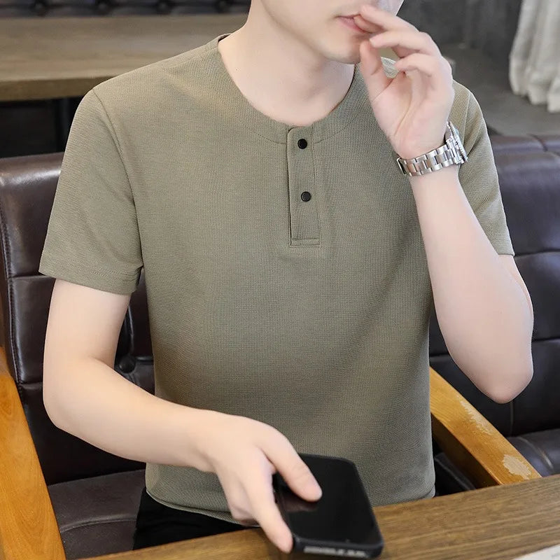 Herren T-Shirt im lässigen Business-Stil mit Sommer Henry Kragen und kurzen Ärmeln
