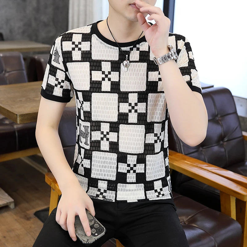 Herren T-Shirt mit geometrischem Druck für lässigen Sommerkomfort