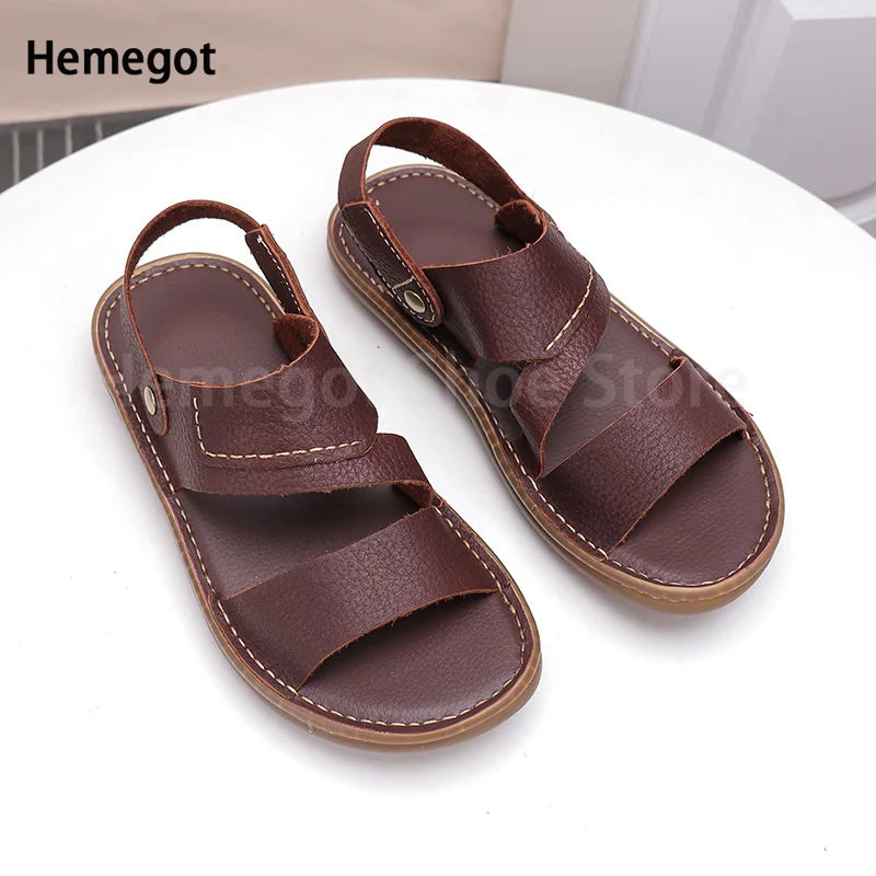 Summer New Men's Leather Sandals Casual Comfortable Breathable Soft Bottom Soft Surface Beach Two-Use Outdoor Sandals