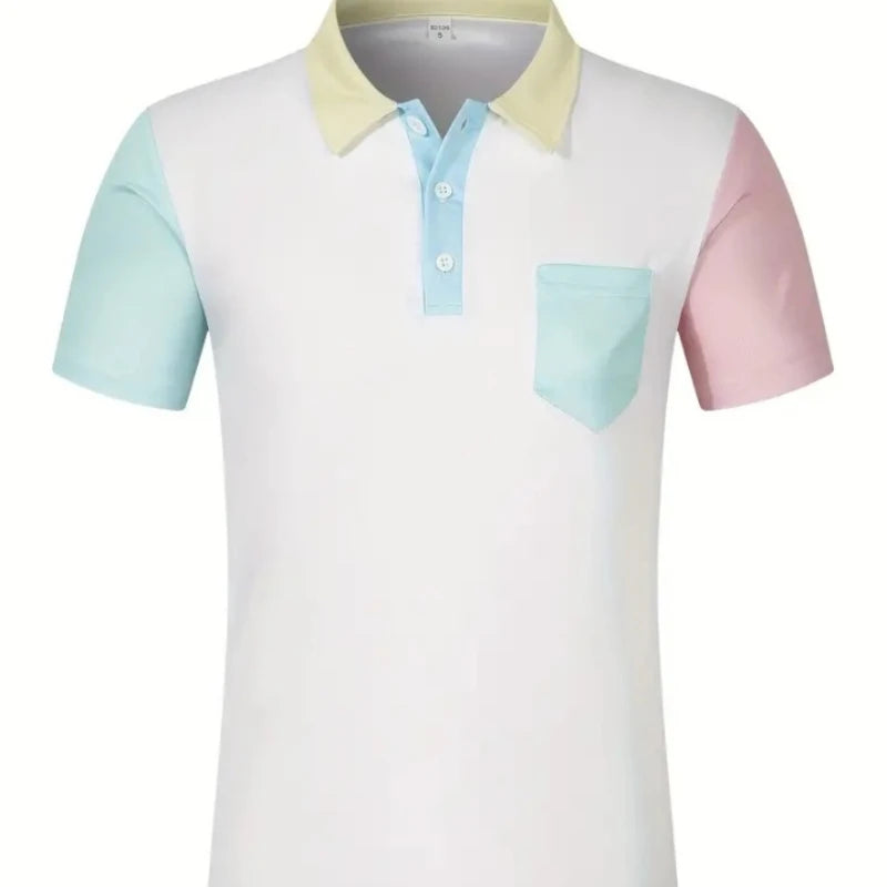 Schlankes Herren-Polohemd mit Waffelstruktur, kurzen Ärmeln und Kapuze mit Kordelzug