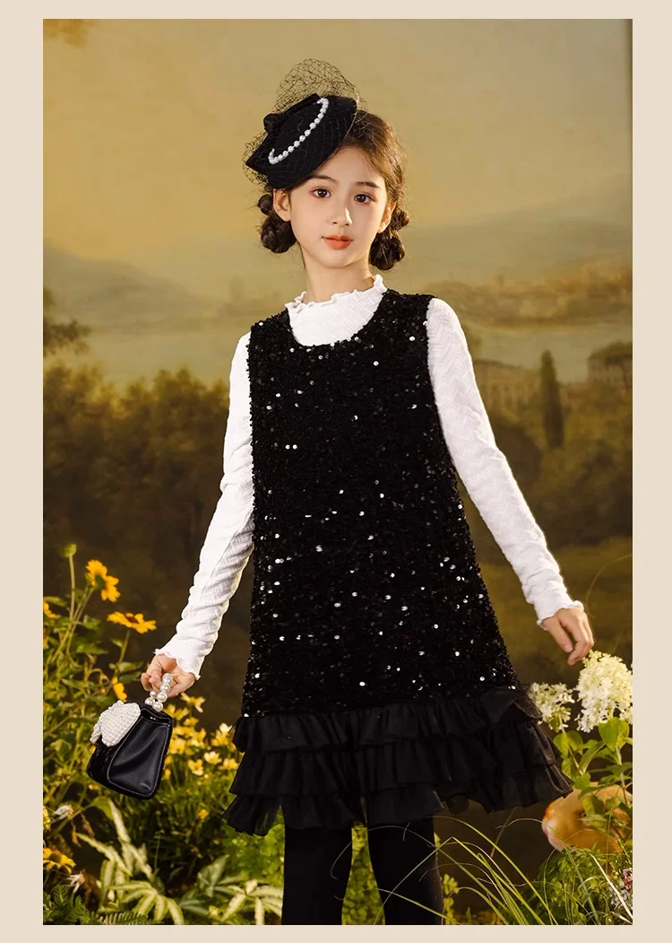 Ärmelloses Sommerkleid für Mädchen mit Pailletten und Blumenmuster – ideal für Hochzeiten und festliche Anlässe