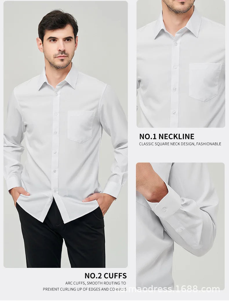 Langärmeliges Herrenhemd in Weiß – Hochwertiges, bügelfreies Businesshemd für Frühling und Sommer