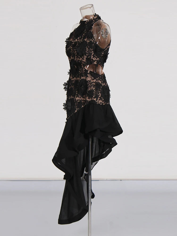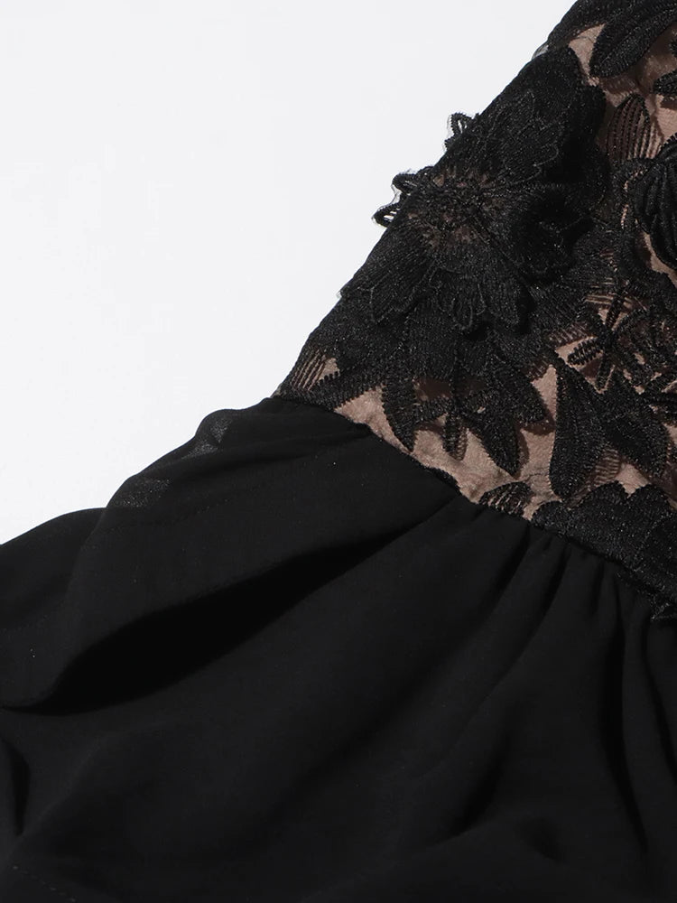 Elegantes Damenkleid mit Rundhalsausschnitt und langen Ärmeln im Patchwork-Design – figurbetont und transparent für einen stilvollen Auftritt