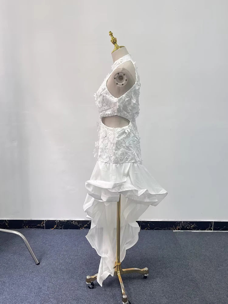 Ärmelloses Midikleid mit Polka-Dots und Patchwork-Spitze im Colorblock-Design für Damen mit Halterneck