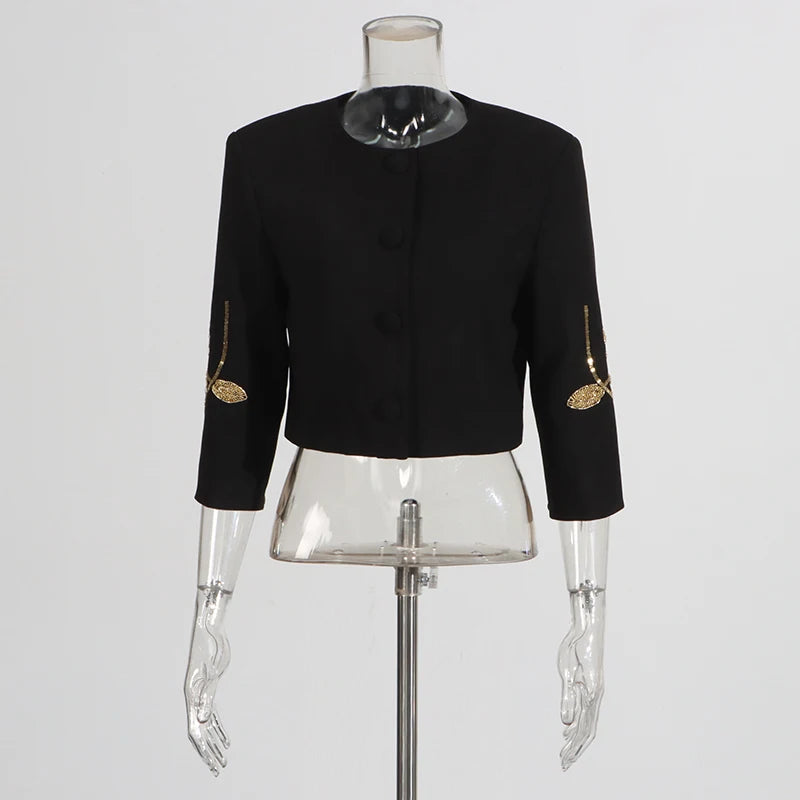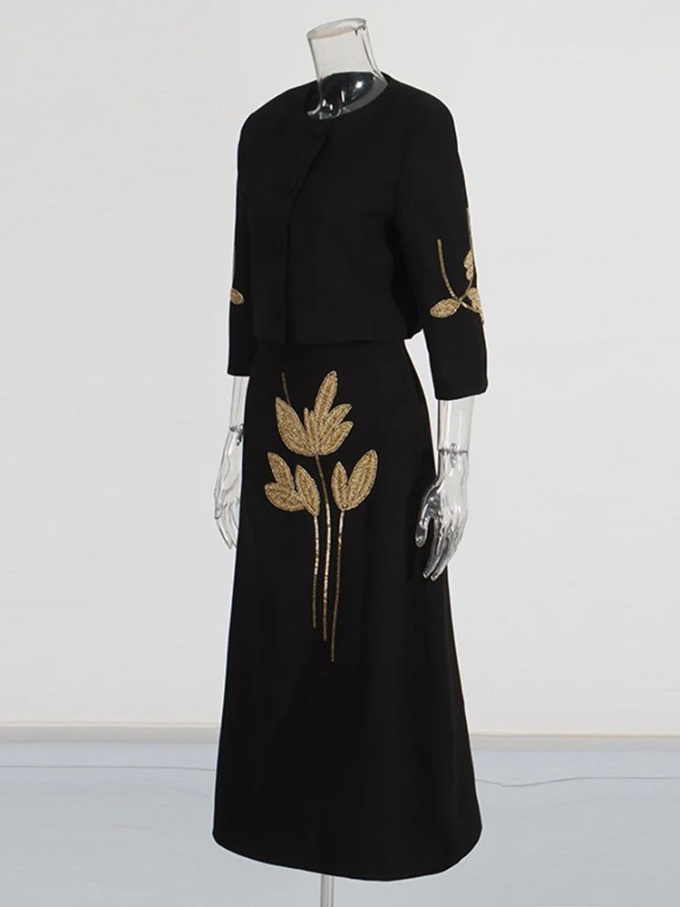 Minimalistisches Damen-Kleid mit Reverskragen, langen Ärmeln und hohem Bund – Patchwork-Design und lockere Passform