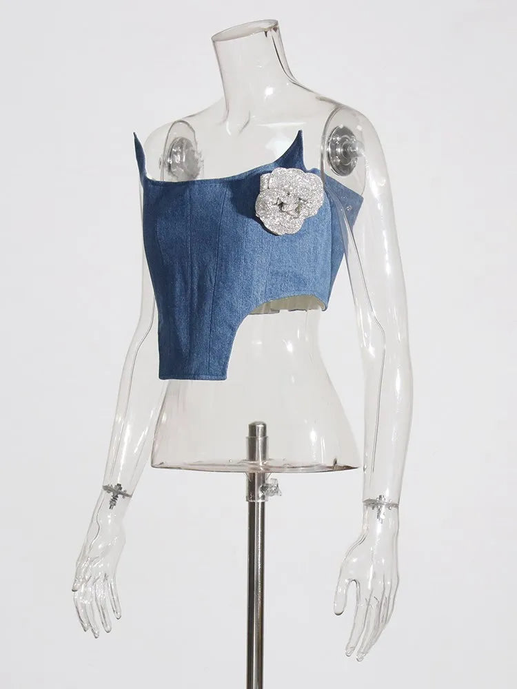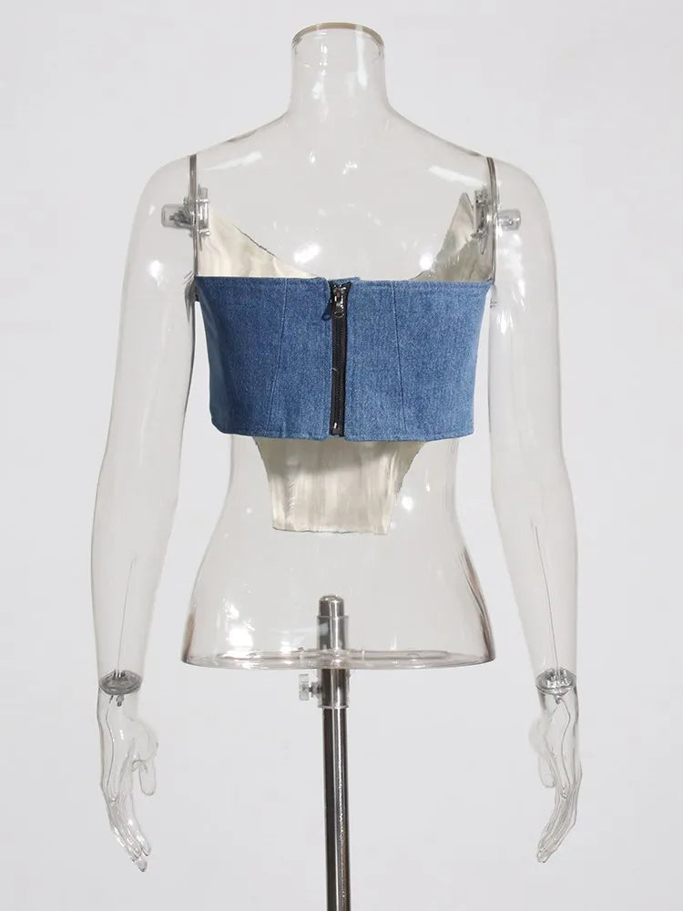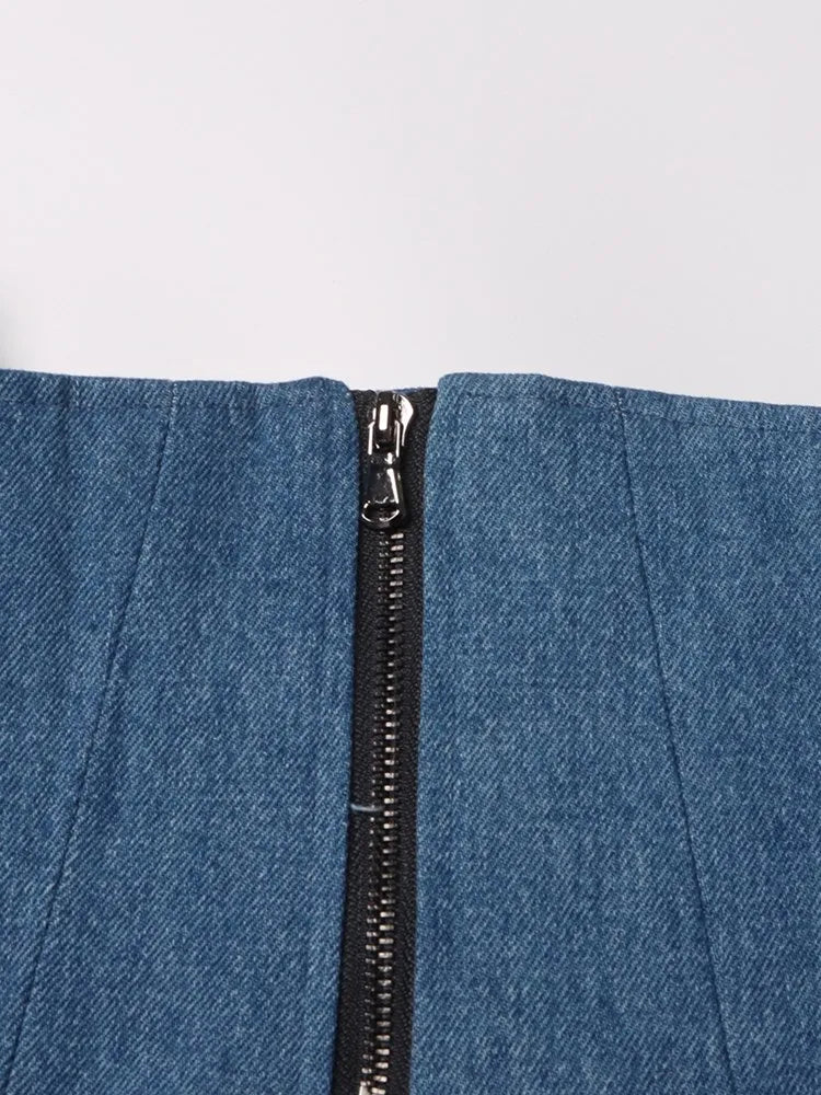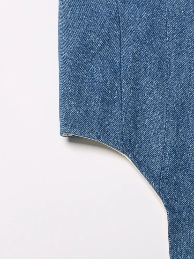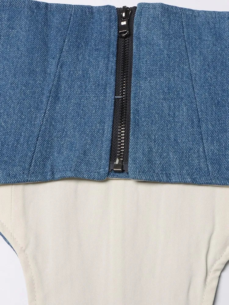 Asymmetrische Damen-Jeans mit hohem Bund und Colorblock-Design – modische, gespleißte Denim-Hose für Frauen.