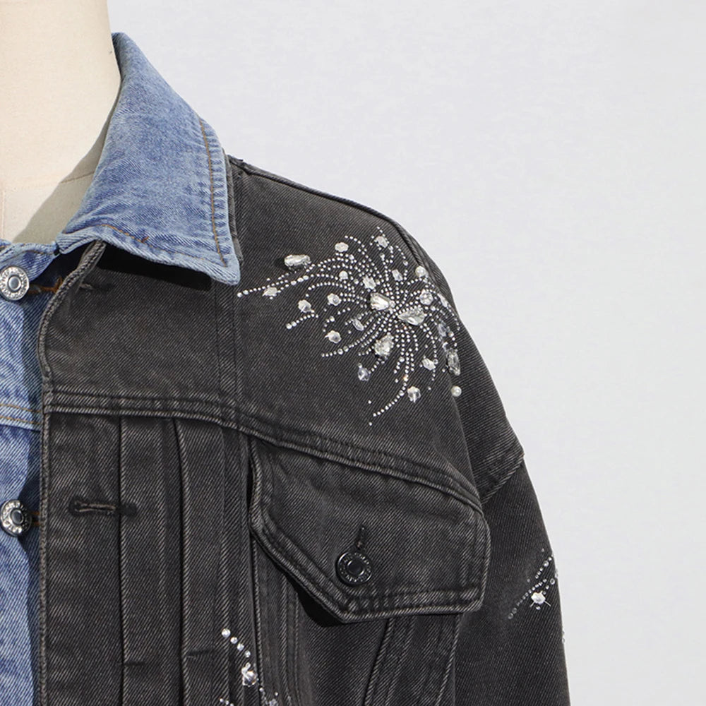 Elegantes Damenkleid mit hohlem Design, Perlenverzierung und hohem Kragen – Langarm, Patchwork und Schlitz.