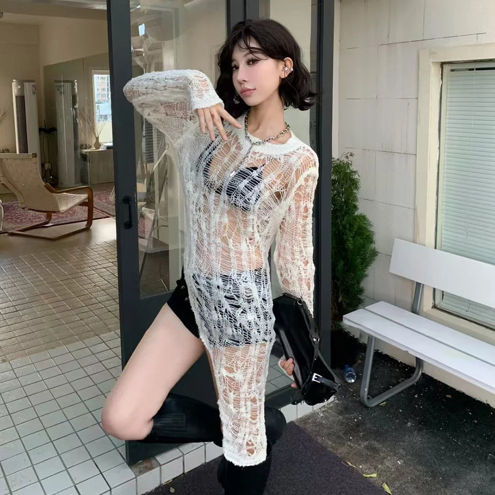 Elegantes Damenkleid mit V-Ausschnitt, langen Ärmeln und Rüschen im Patchwork-Design – figurbetont und stilvoll