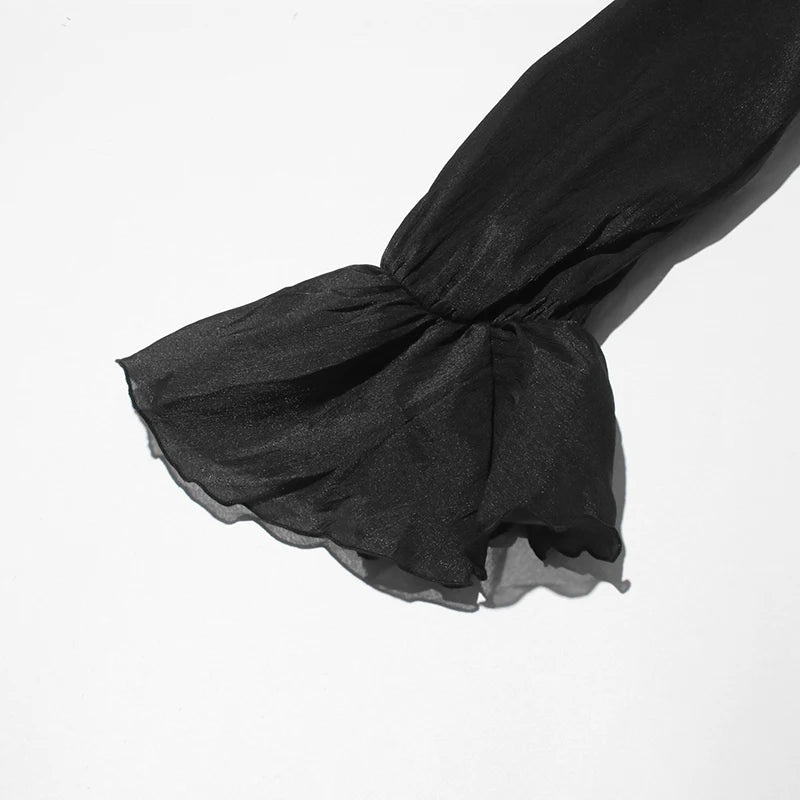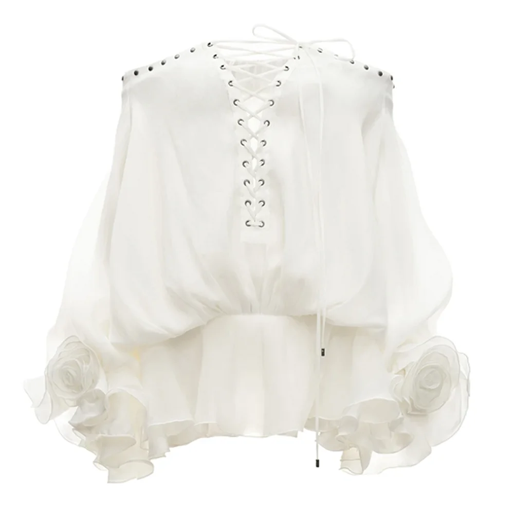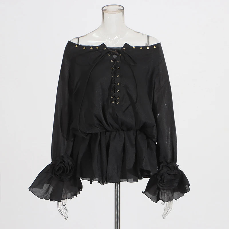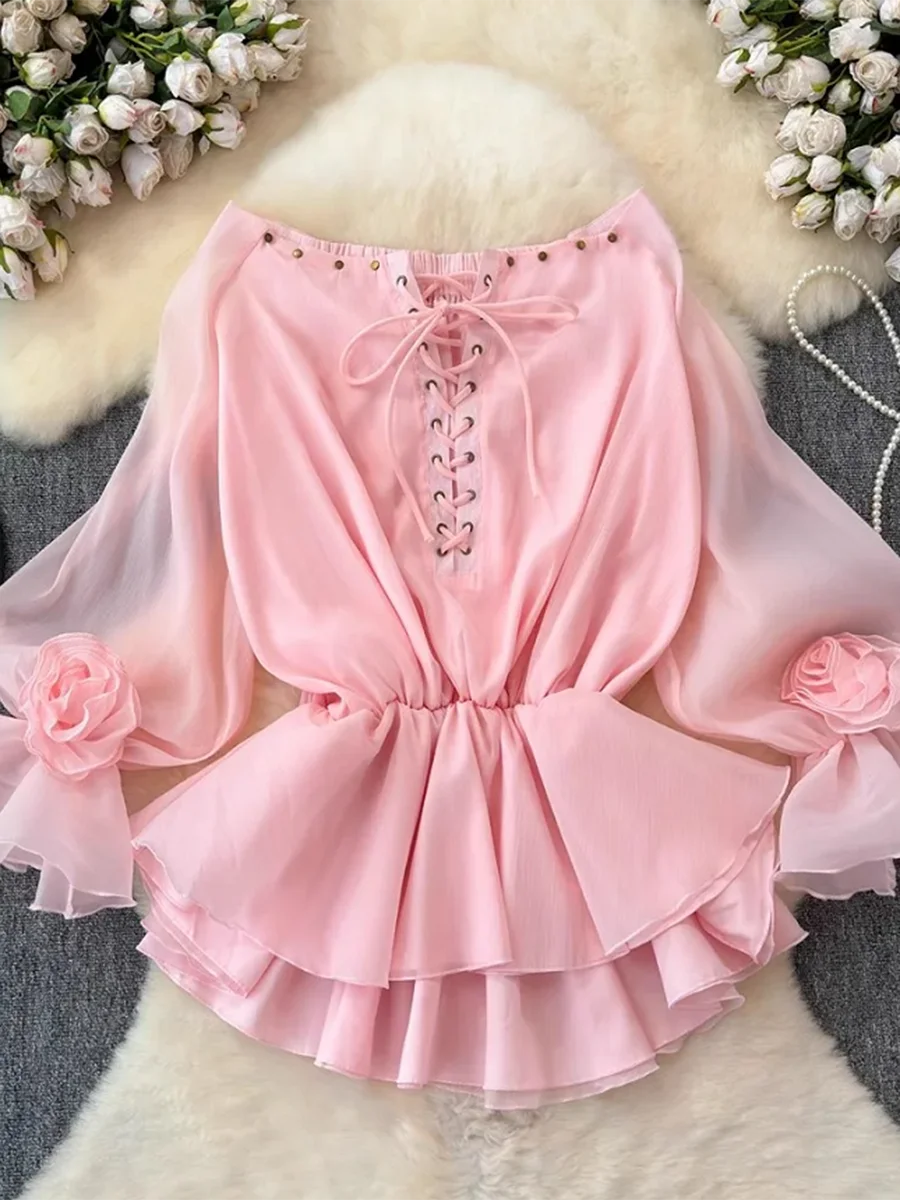 Elegantes Damen-Zweiteiler-Set mit langärmligem Oberteil und hohem Taillenbund – verziert mit Diamantdetails und Schlitzhose