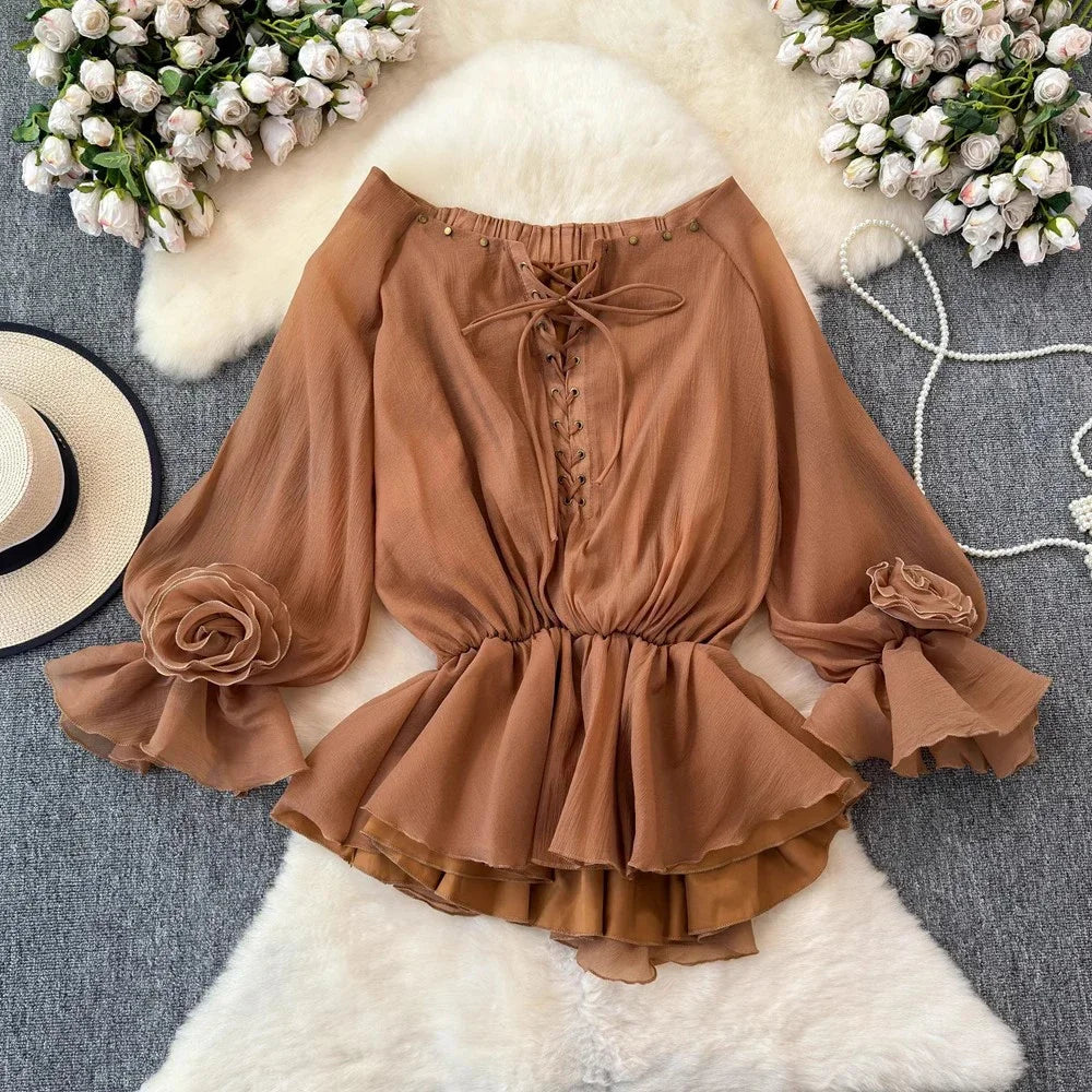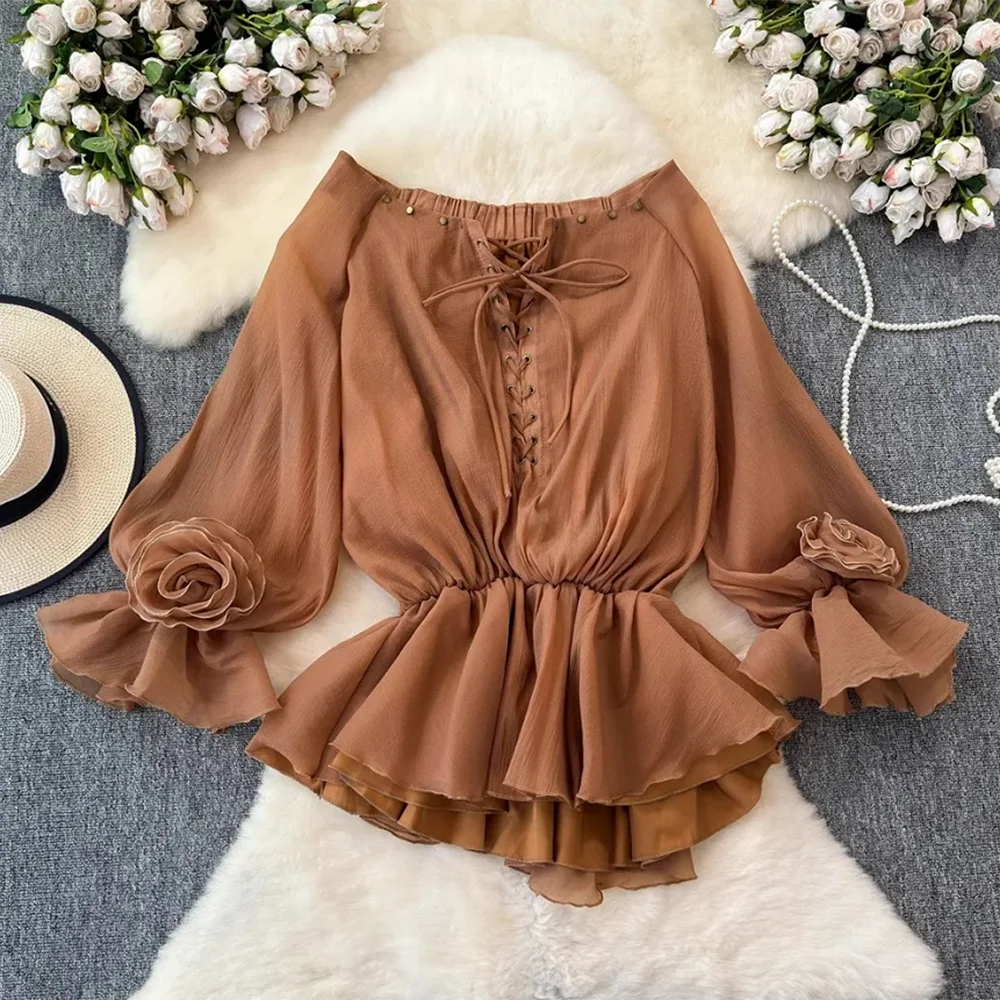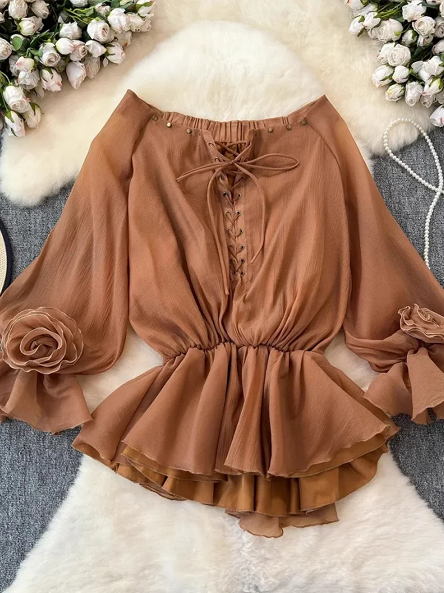 Elegantes Damen-Zweiteiler-Set mit langärmligem Oberteil und hohem Taillenbund – verziert mit Diamantdetails und Schlitzhose