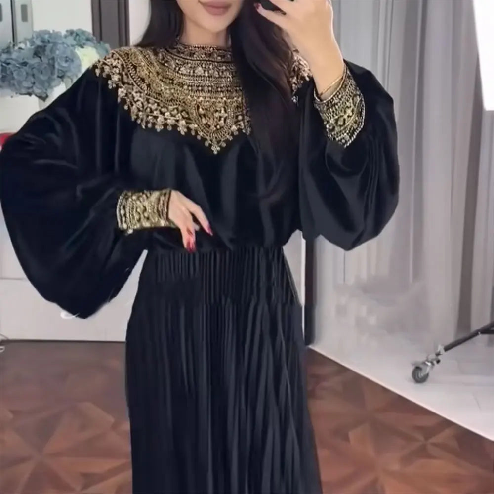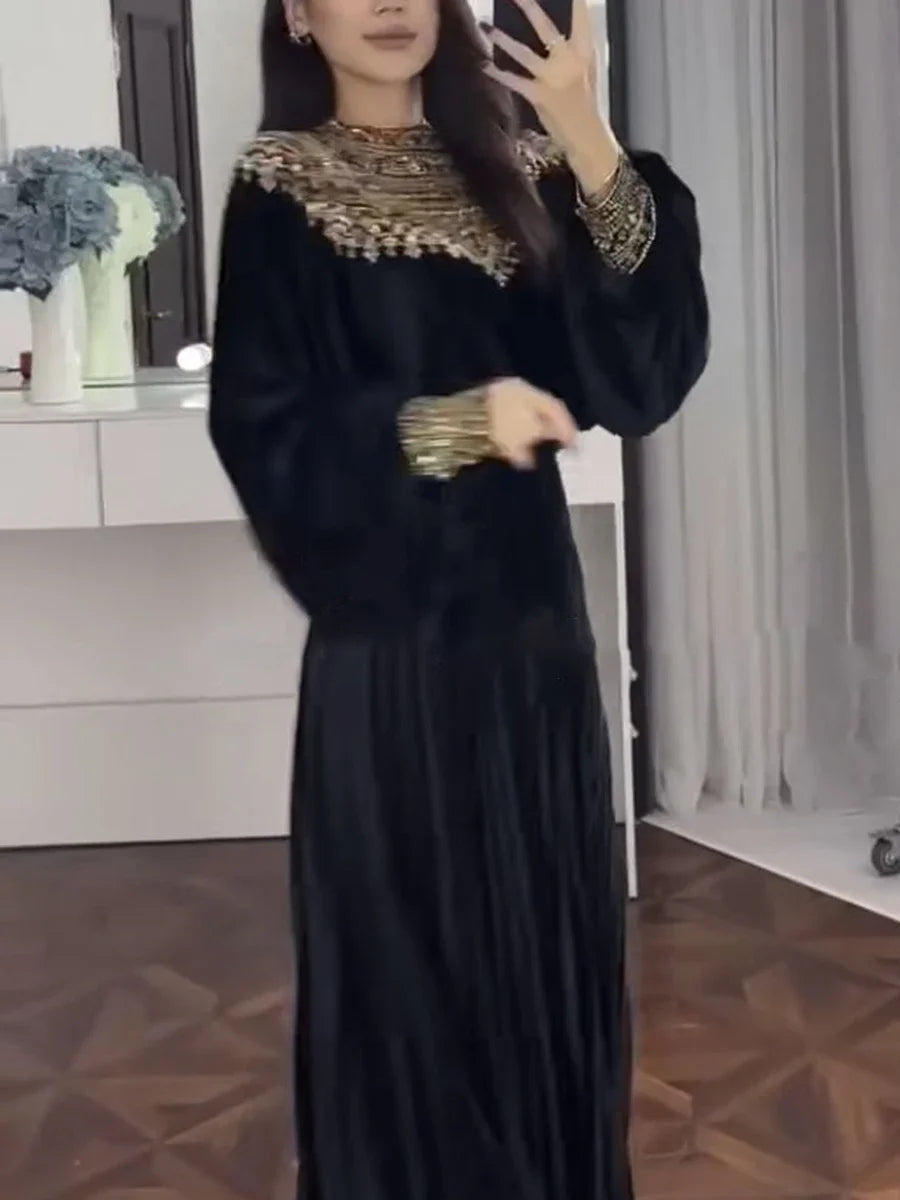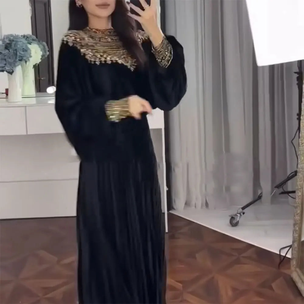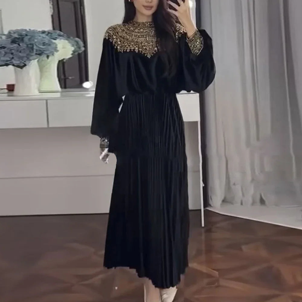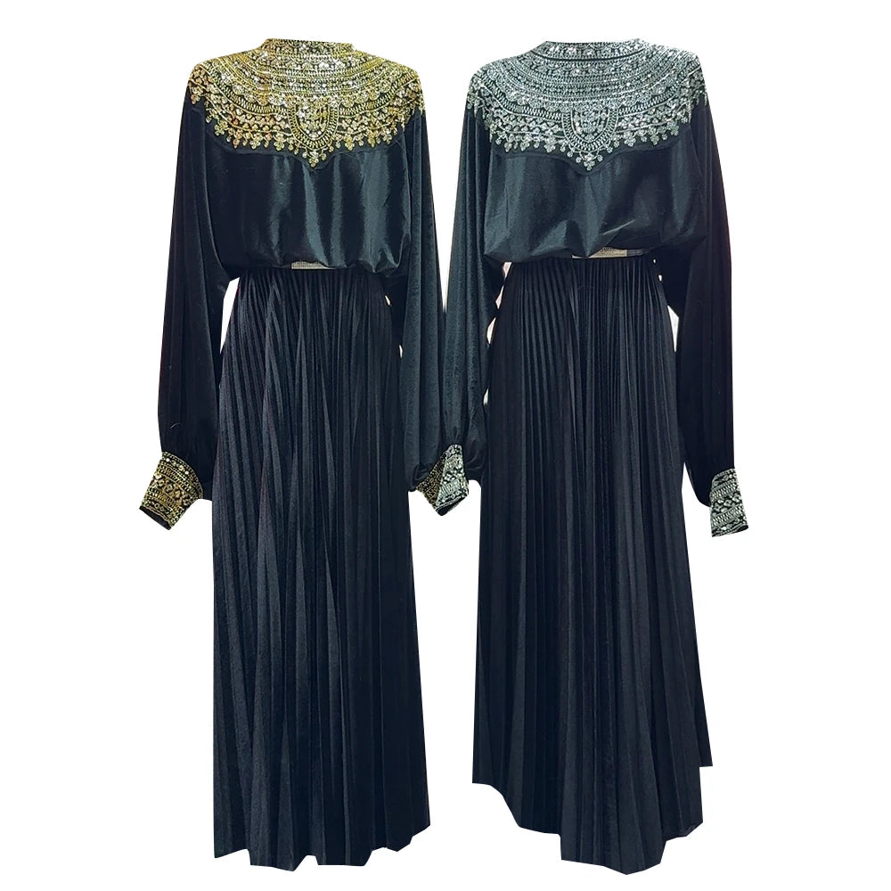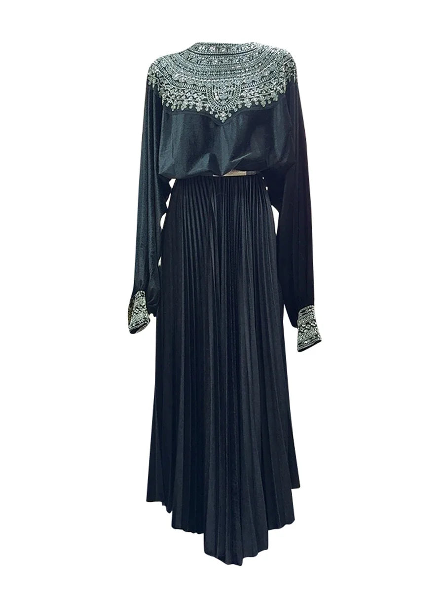 Zweiteiliges Damen-Set mit V-Ausschnitt, Applikationen und Patchwork-Design – Langarm-Oberteil mit Taschen und hoch taillierte Hose