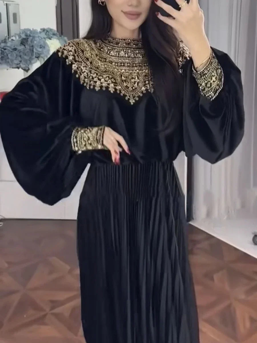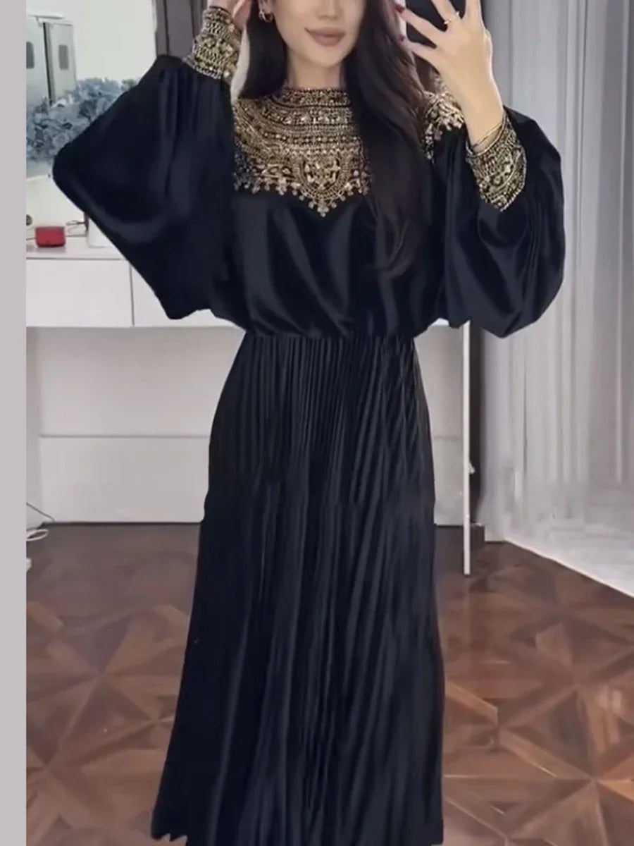 Elegantes Damen-Minikleid mit Perlenbesatz, Reverskragen und langen Ärmeln – modisches Patchwork-Design mit Knopfleiste.
