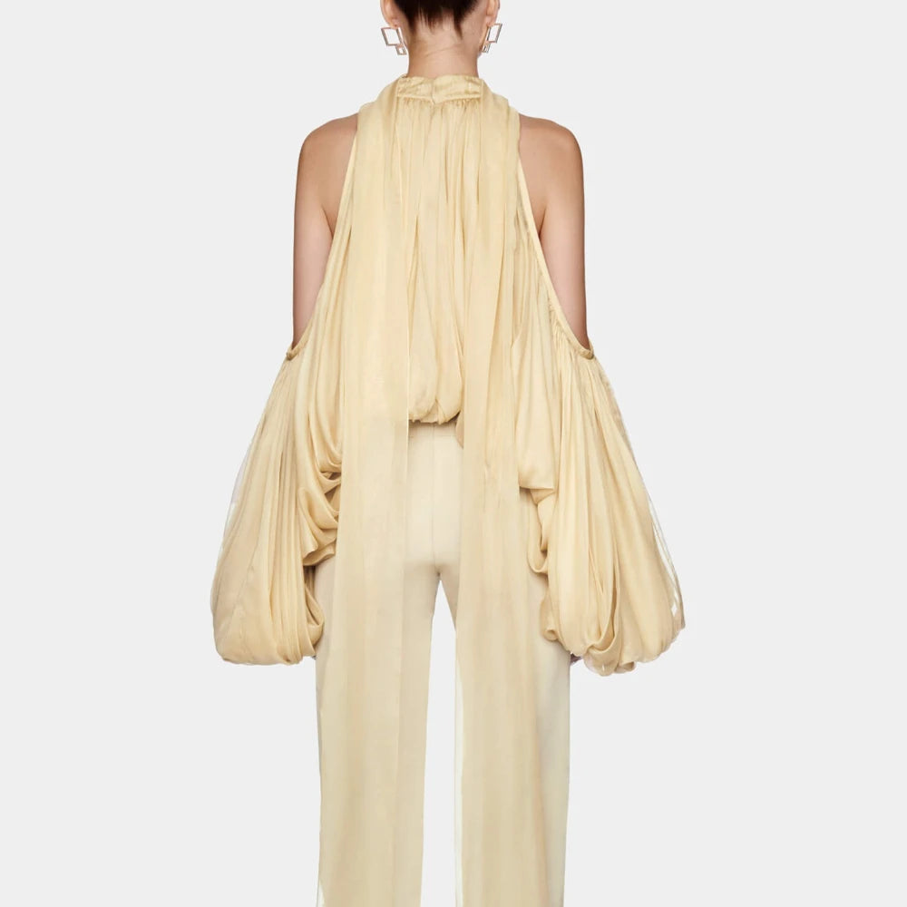 Elegantes ärmelloses Midikleid mit Pailletten und Patchwork-Design im Halterneck-Stil für Damen