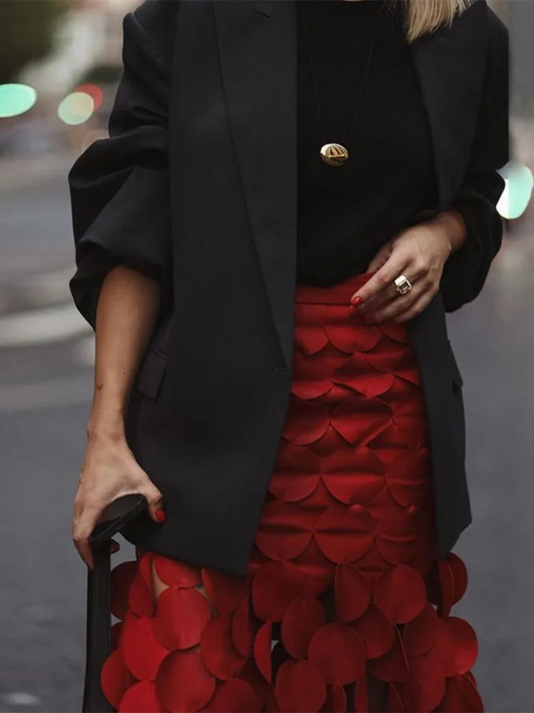 Elegantes Damen-Kleid mit Diamantmuster, Reverskragen und langen Ärmeln – figurbetontes Patchwork-Design mit doppelreihiger Knopfleiste.