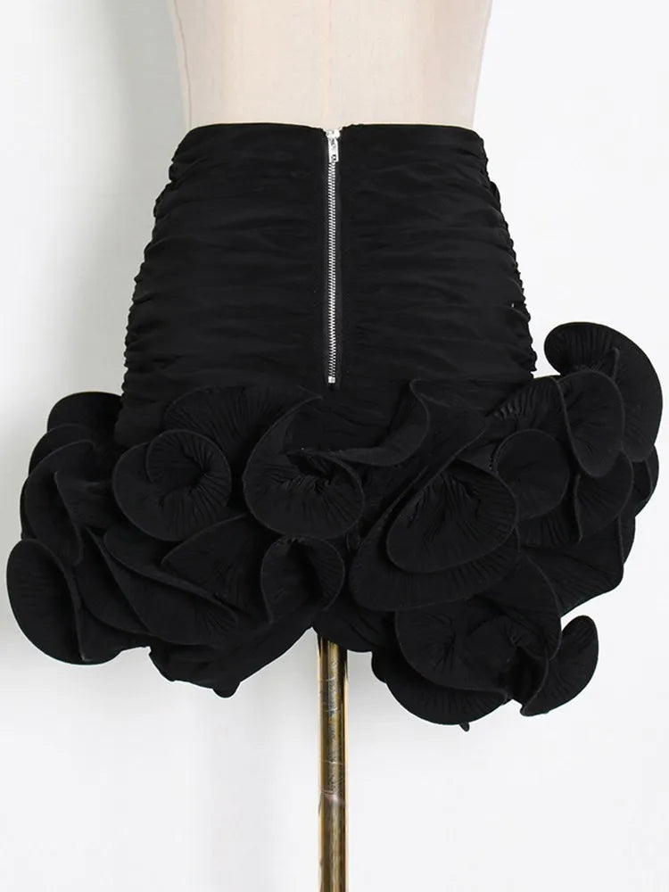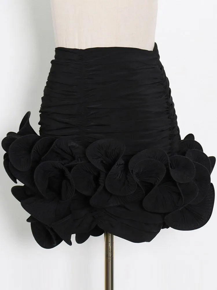 Schulterfreies ärmelloses Minikleid mit 3D-Blumen und Patchwork-Design für Damen – figurbetont und elegant
