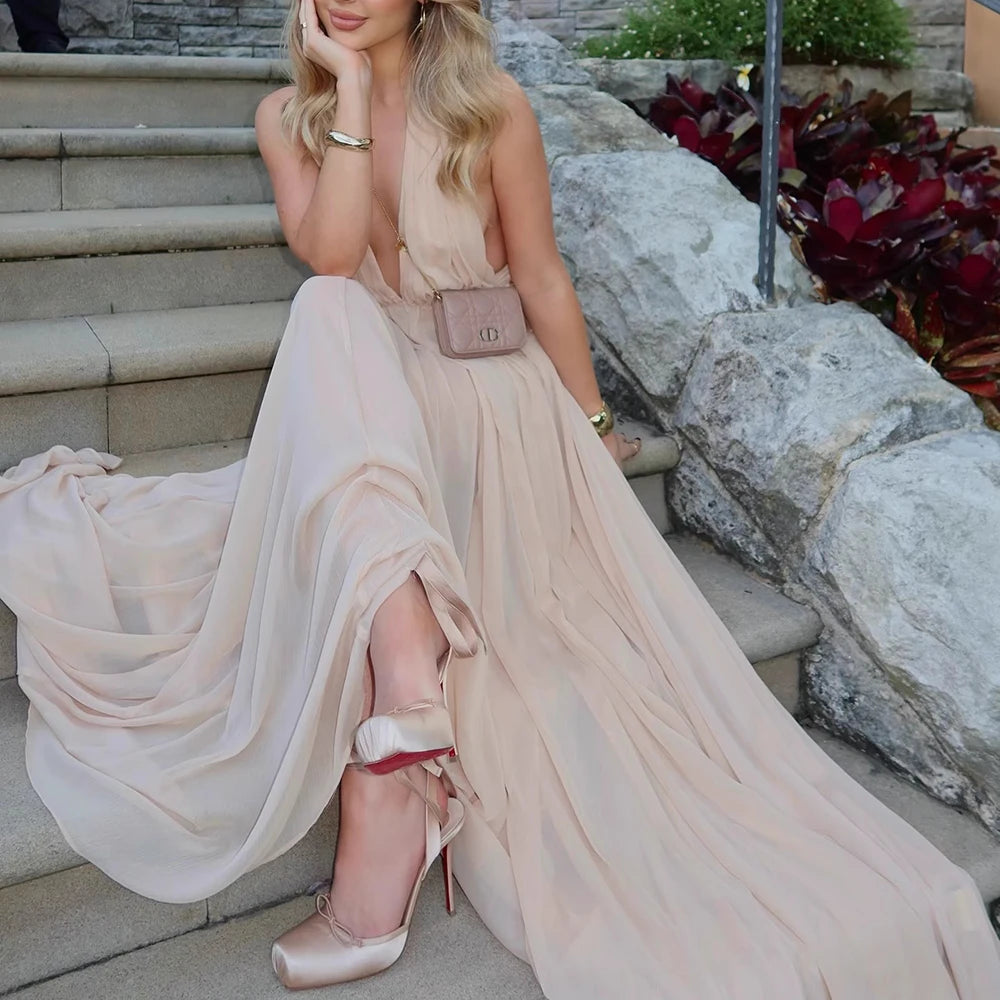 Elegantes Damen-Kleid mit V-Ausschnitt, kurzen Ärmeln und Perlenverzierung – Patchwork-Design mit Rüschen und Falten.