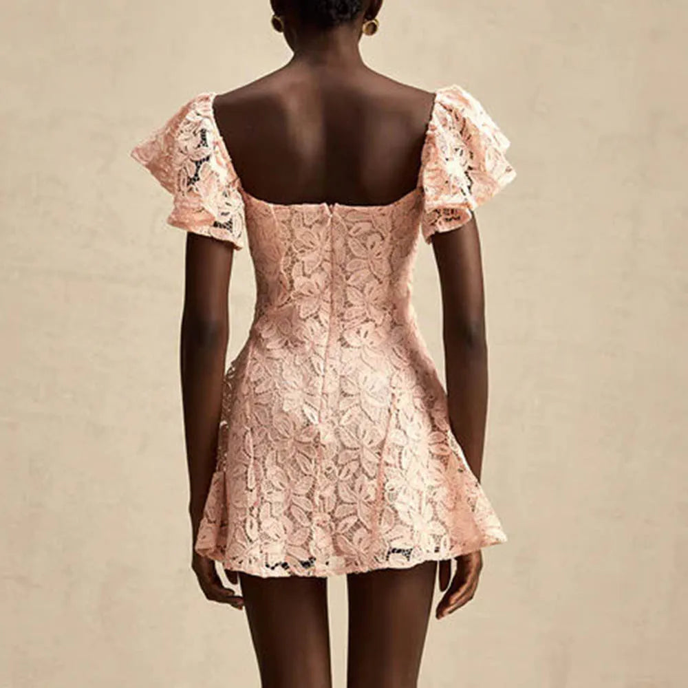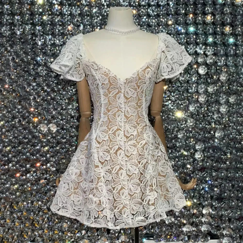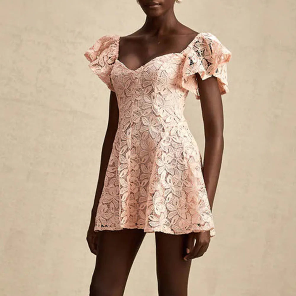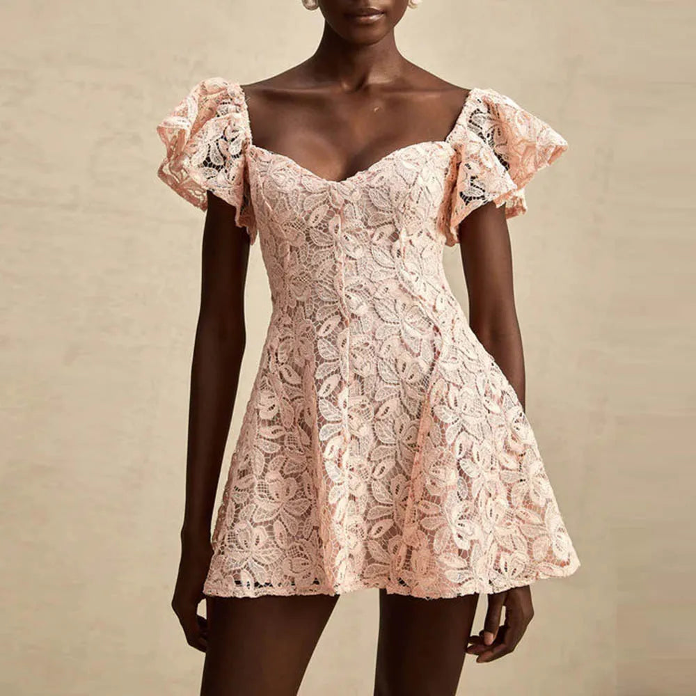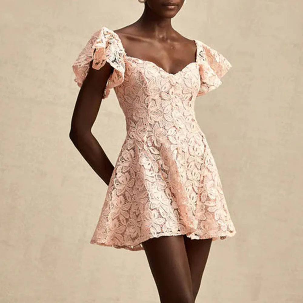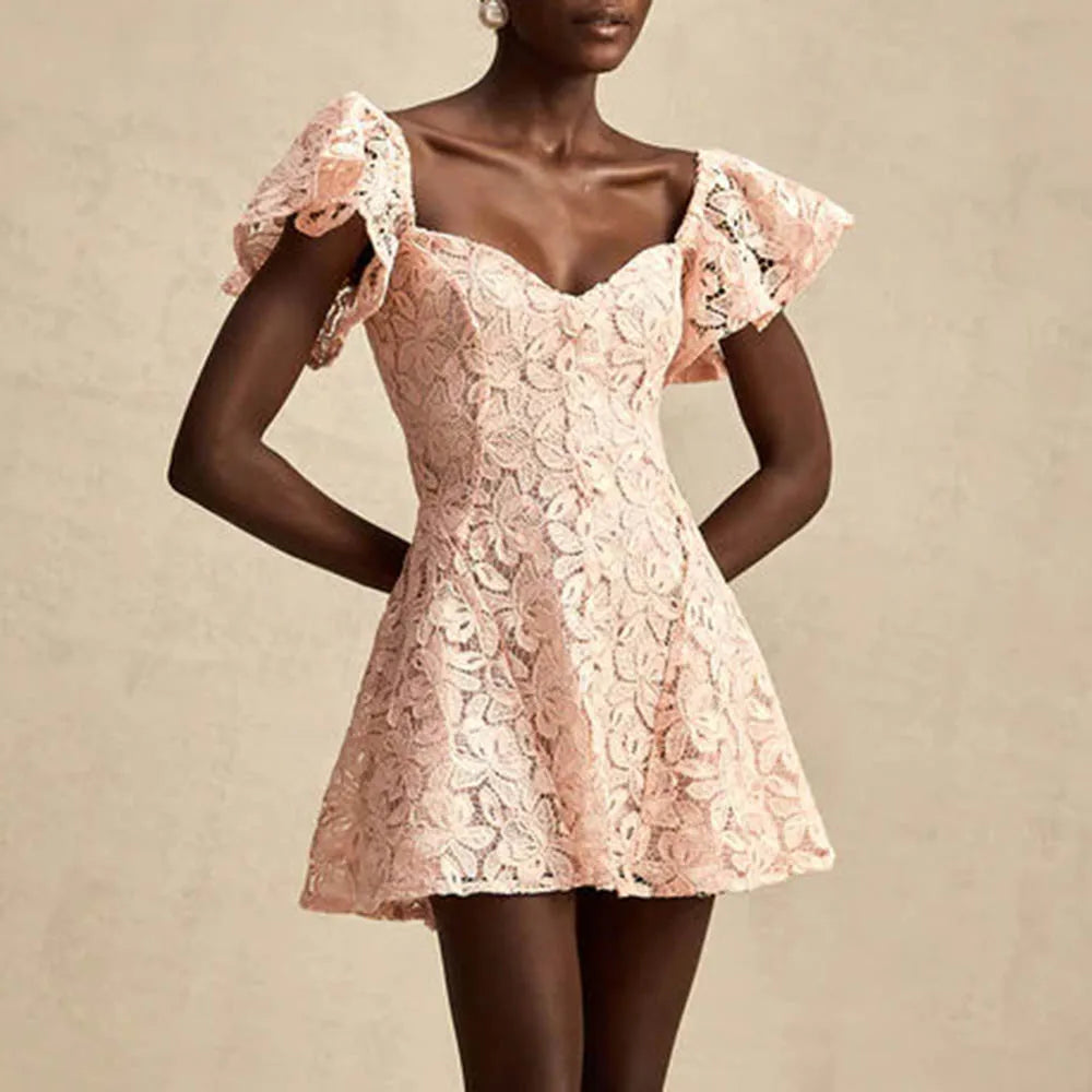 Elegantes zweiteiliges Damen-Set mit V-Ausschnitt, ärmellosem Oberteil und hoch tailliertem Rock mit 3D-Blumendetails und Schlitz.
